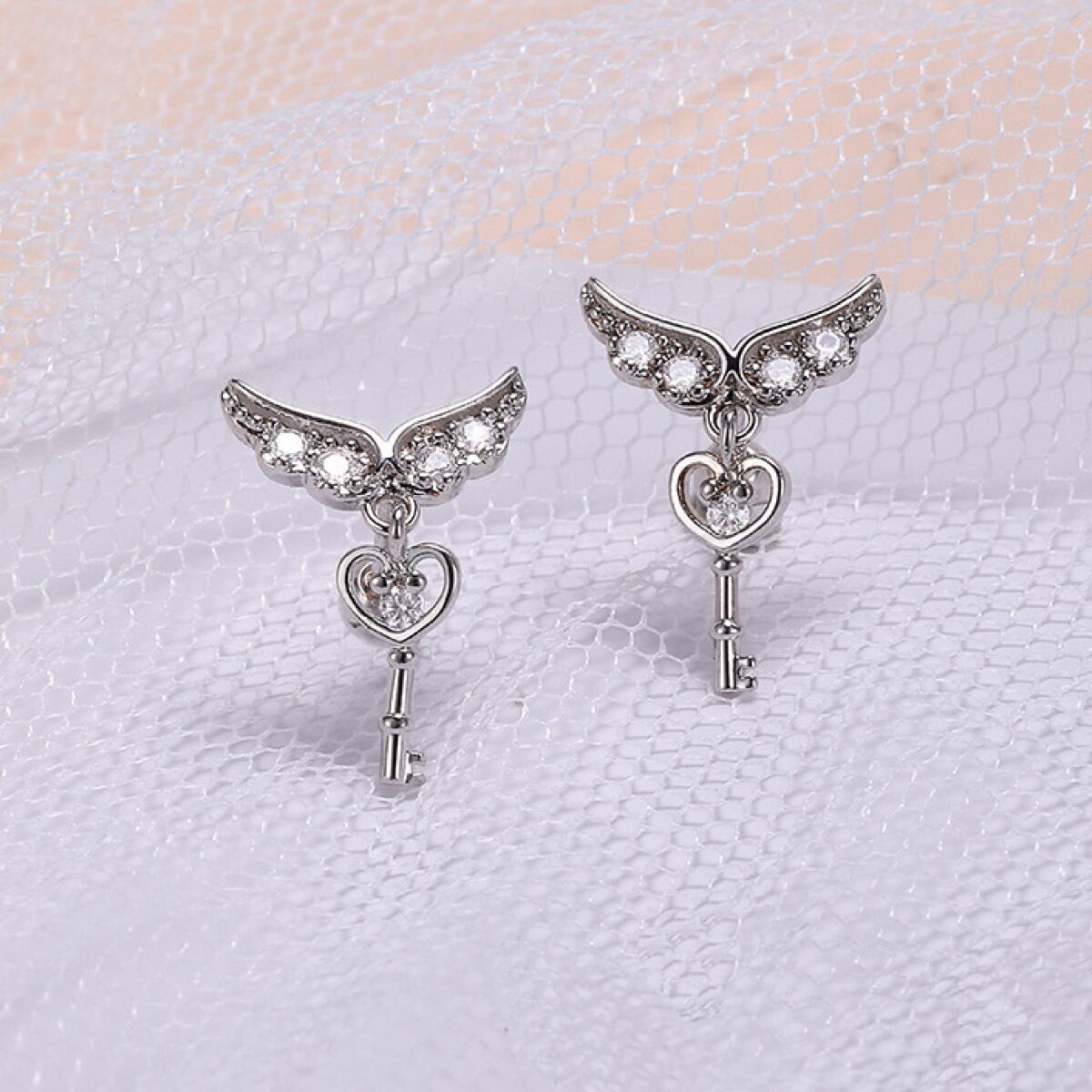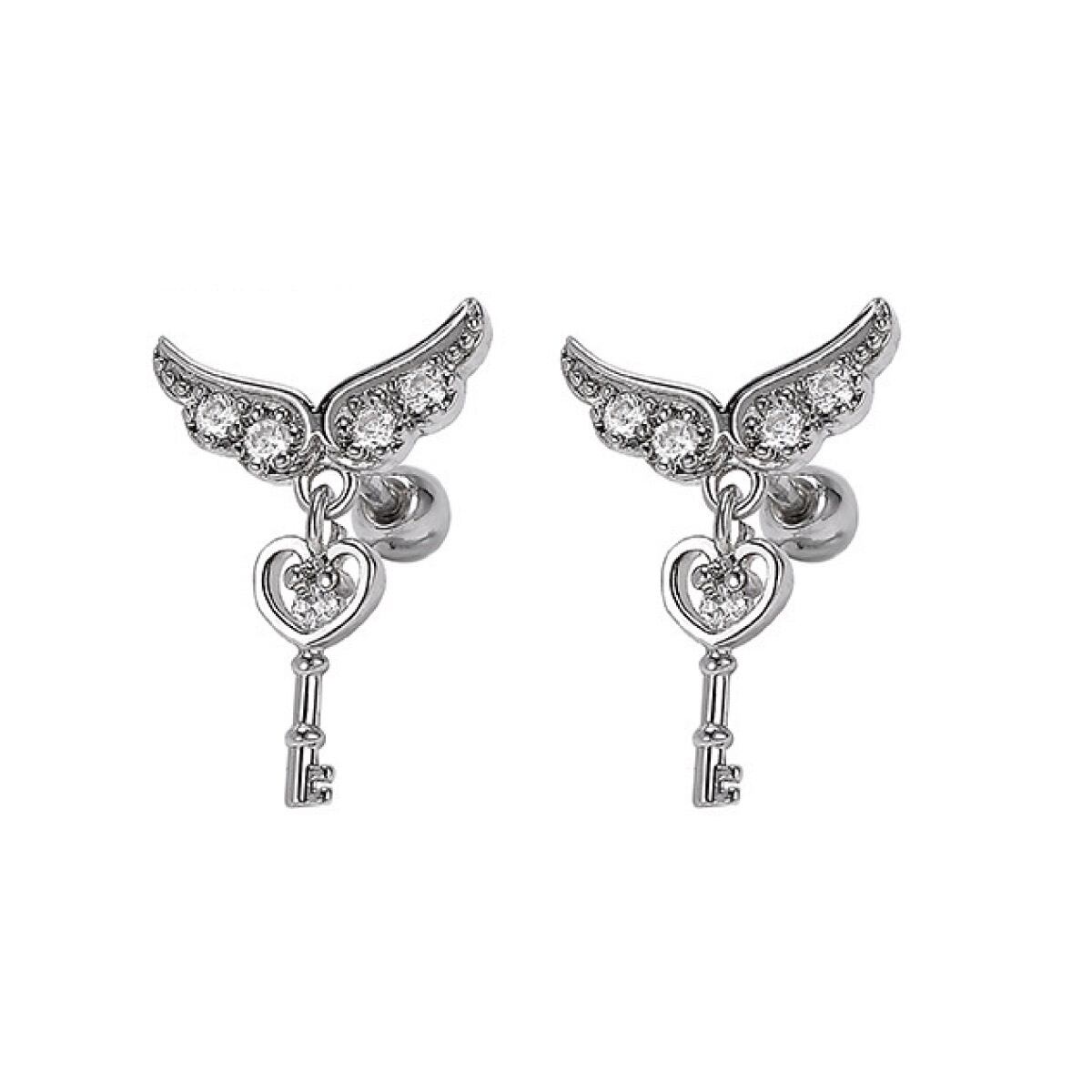 ピアス レディース サージカルステンレス製 キュービックジルコニア 18G ボディピアス 羽根 天使 フェザー ハート 鍵 キー 揺れる 両耳 お肌に優しい 低金属アレルギー キラキラ かわいい 大人可愛い 誕生日 記念日 プレゼント ギフト メール便送料無料