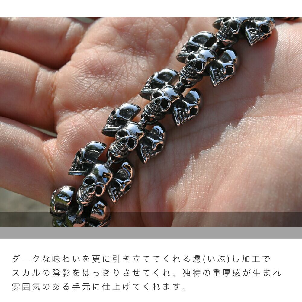 スカルブレスレット メンズ サージカルステンレス シルバー マンテル 金属アレルギー対応 低アレルギー 骸骨 ドクロ 燻し加工 重厚感 ボリューム ワイルド かっこいい ロック パンク クール 誕生日 クリスマス プレゼント