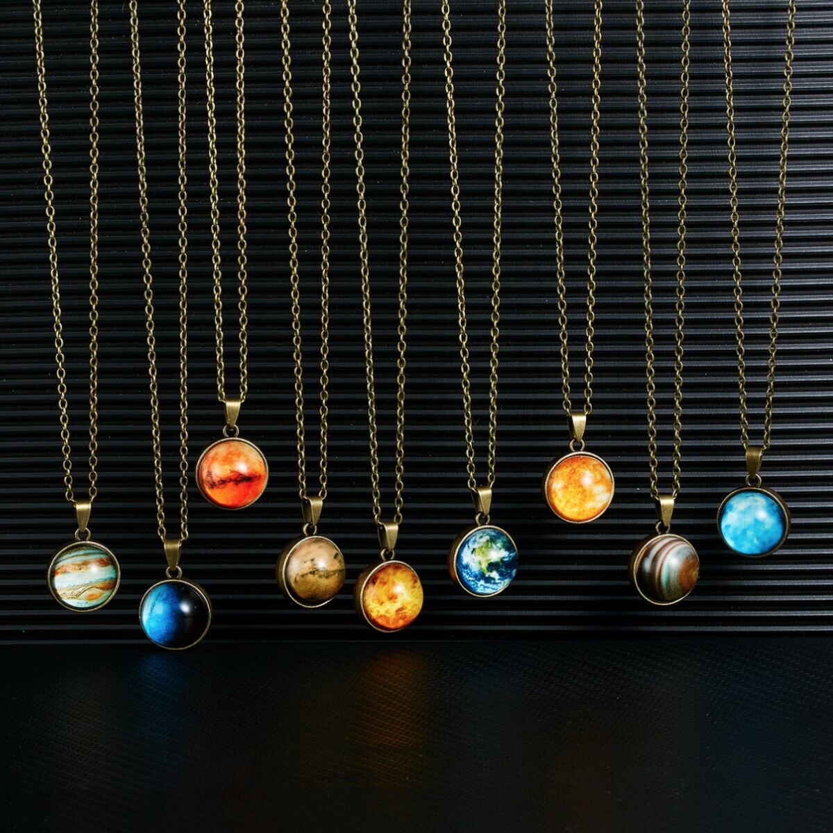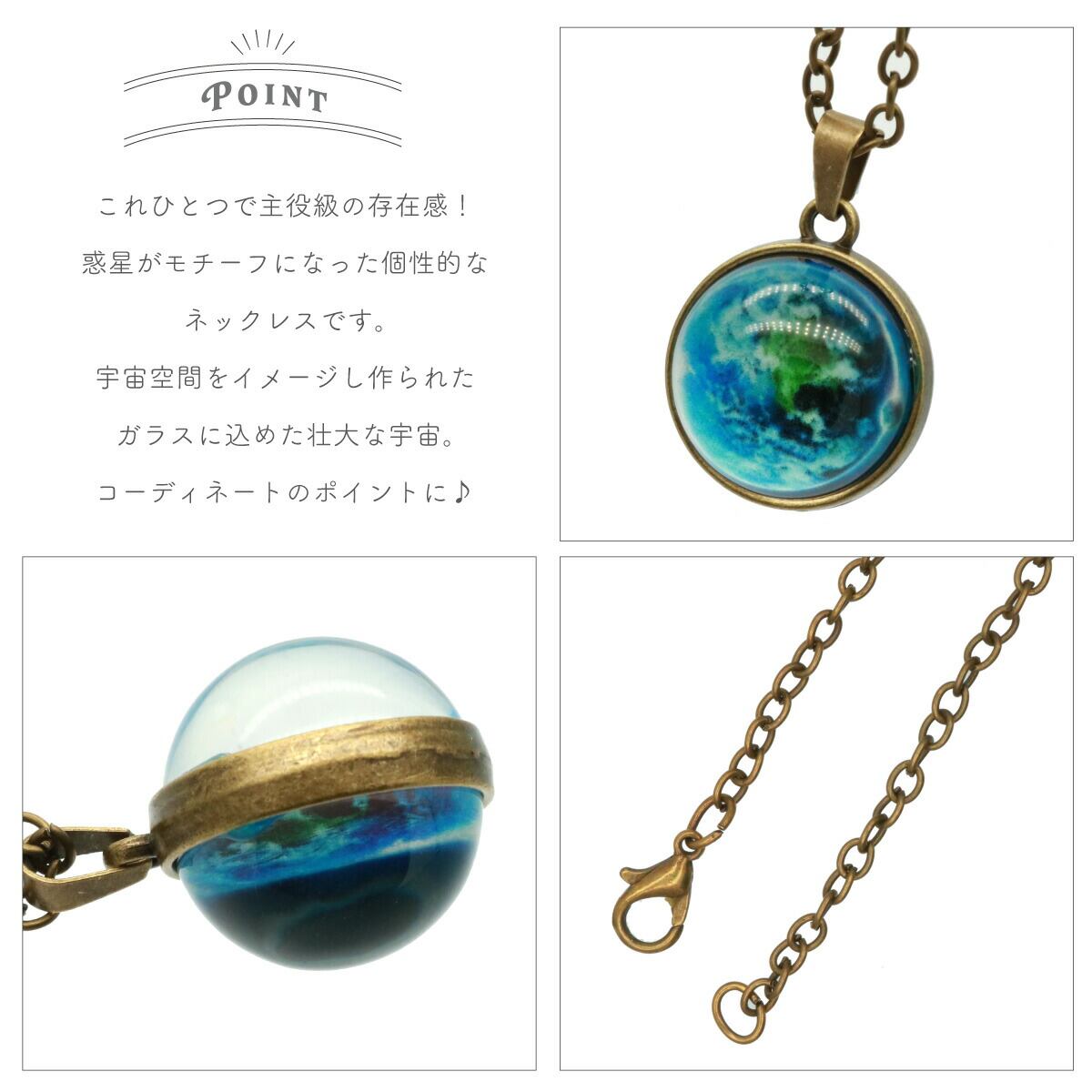 神秘的な宇宙空間をガラスに込めた惑星ネックレスです。