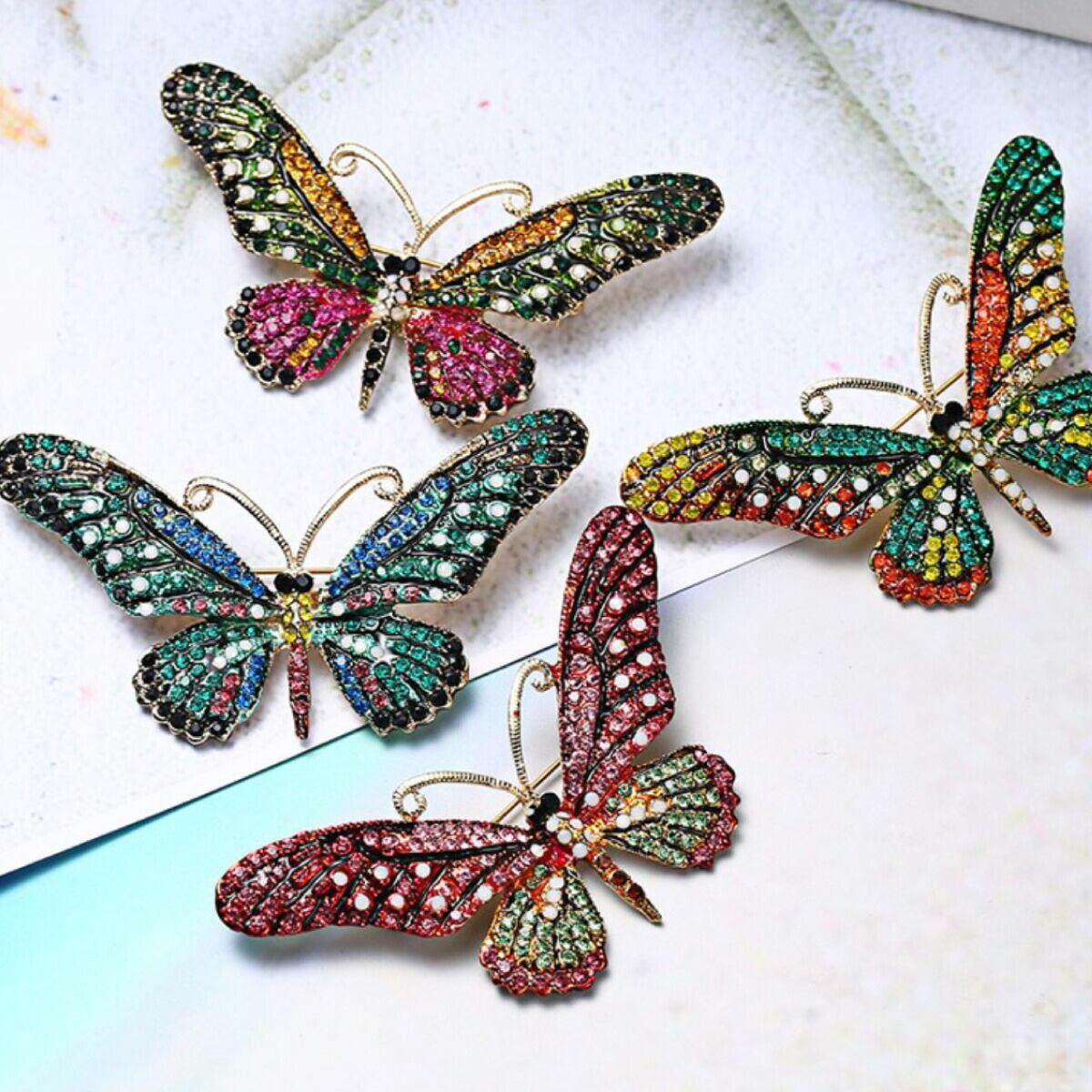 キラキラとラインストーンが煌めく蝶のブローチです。