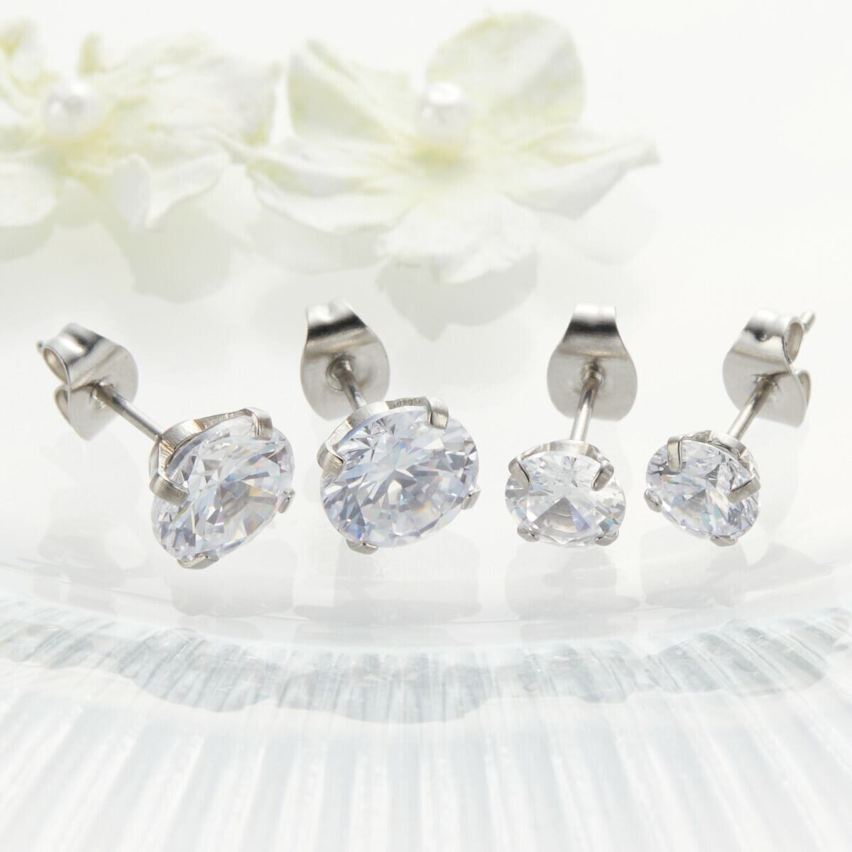 ピアス つけっぱなし レディース サージカルステンレス製 キュービックジルコニア 一石 一粒 ワンストーン 4本爪 シンプル キラキラ お肌に優しい 金属アレルギー対応 金アレ 上品 かわいい 誕生日 記念日 プレゼント メール便送料無料