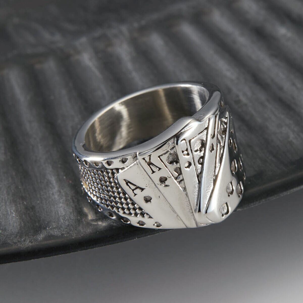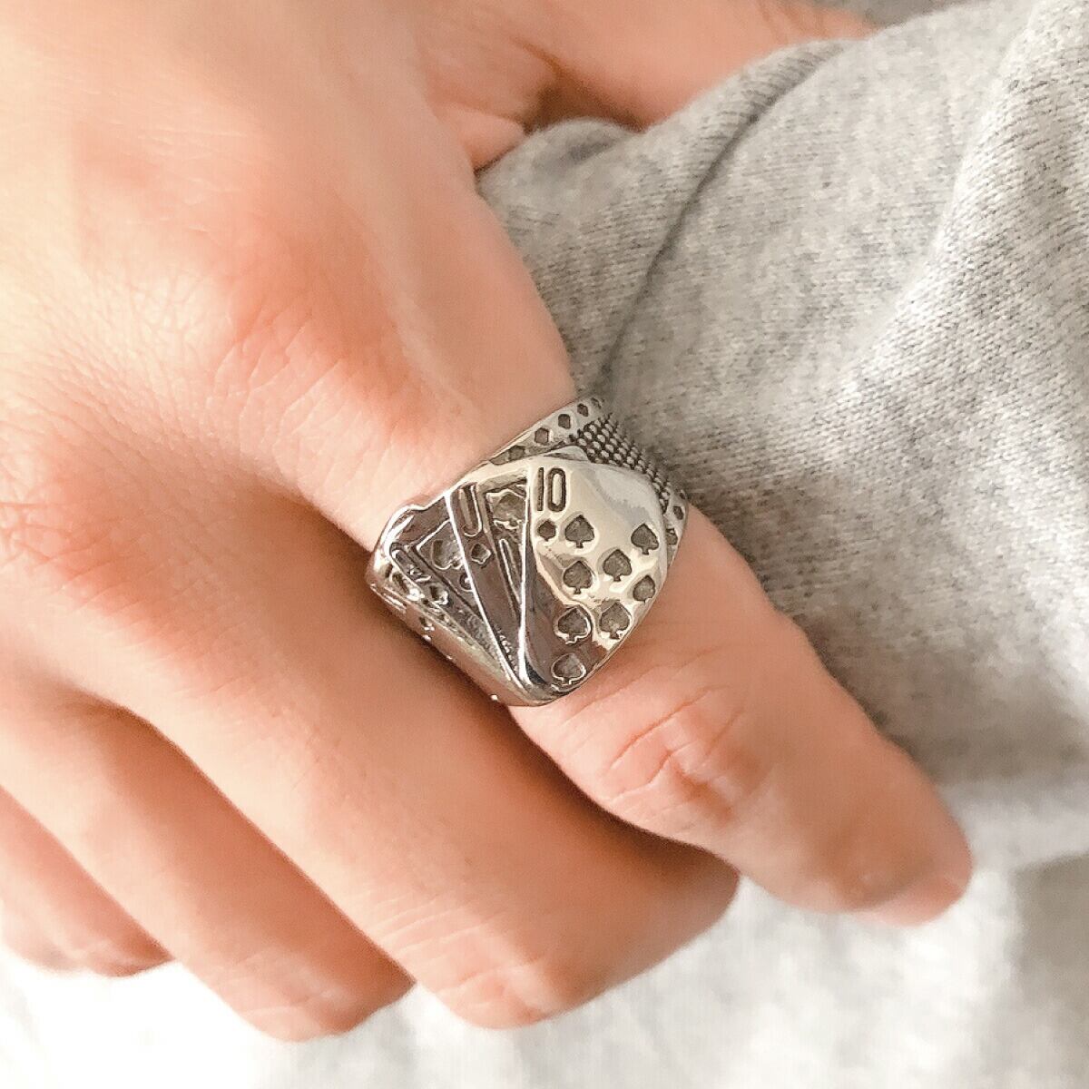 リング メンズ サージカルステンレス製 トランプ カード ポーカー 個性的 ユニーク お肌に優しい 金属アレルギー対応 幅広 ワイド オシャレ かっこいい インパクト 大ぶり 彼氏 旦那 誕生日 記念日 プレゼント ギフト メール便送料無料