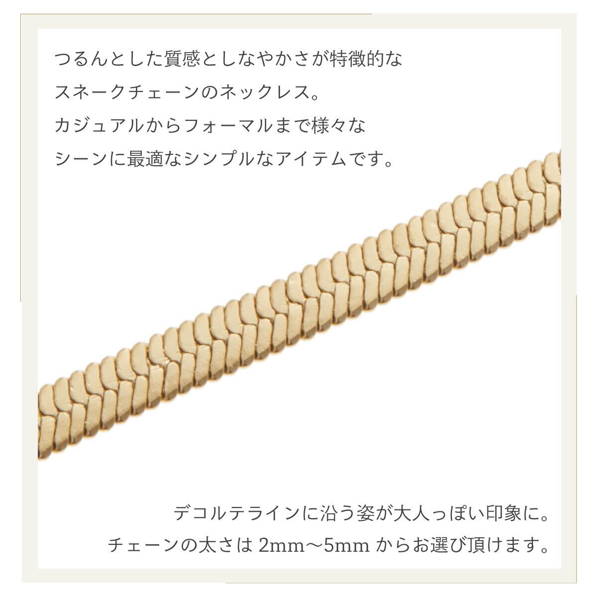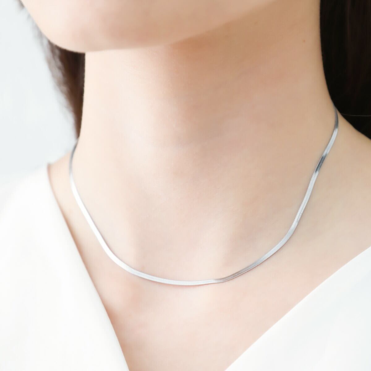 シンプルなスネークチェーンが存在感のあるネックレス。