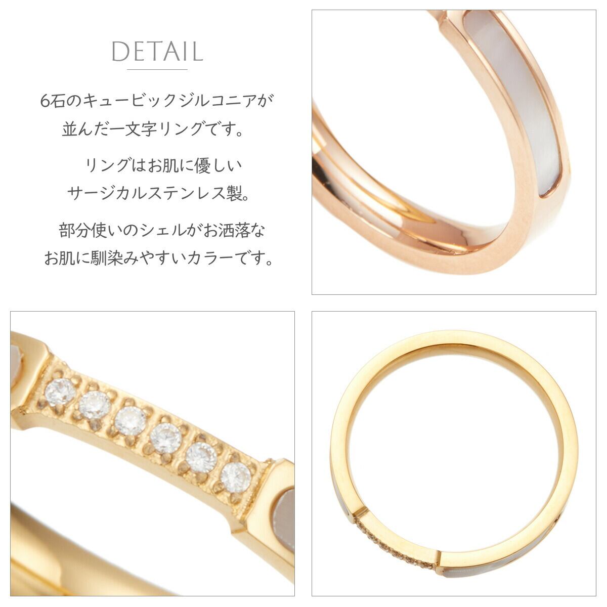 リング レディース サージカルステンレス製 6粒 6石 キュービックジルコニア シェル フラット おしゃれ 上品 大人 可愛い 指輪 9号 11号 14号 16号 ゴールド ピンクゴールド お肌に優しい 金属アレルギー対応 プレゼント ギフト メール便送料無料