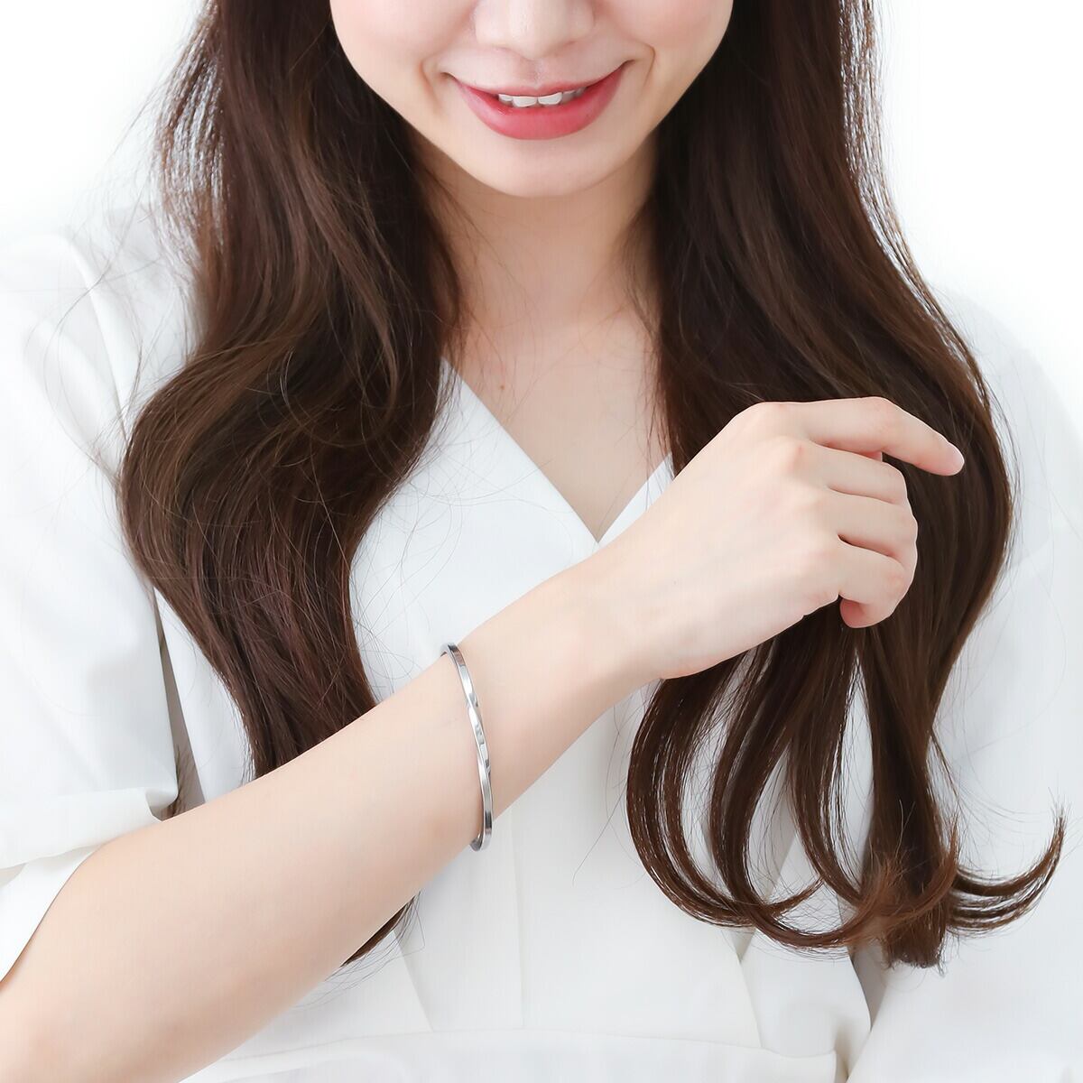 飾りのないベーシックなバングルは、スタイルを選ばずに合わせやすいアイテム。