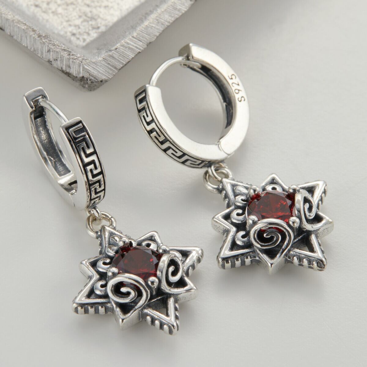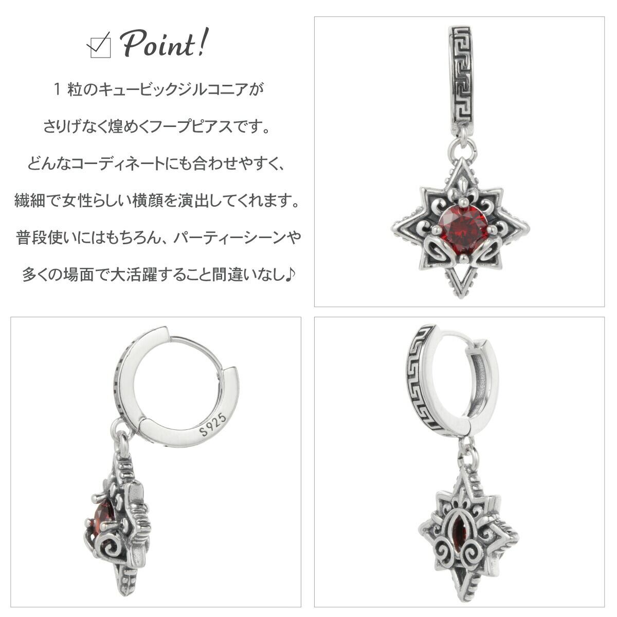 フープピアス レディース シルバー925製 キュービックジルコニア 星型 八芒星 オクタグラム スター 赤石 揺れる お肌に優しい 金属アレルギー対応 上品 かわいい パーティー 誕生日 記念日 プレゼント メール便送料無料