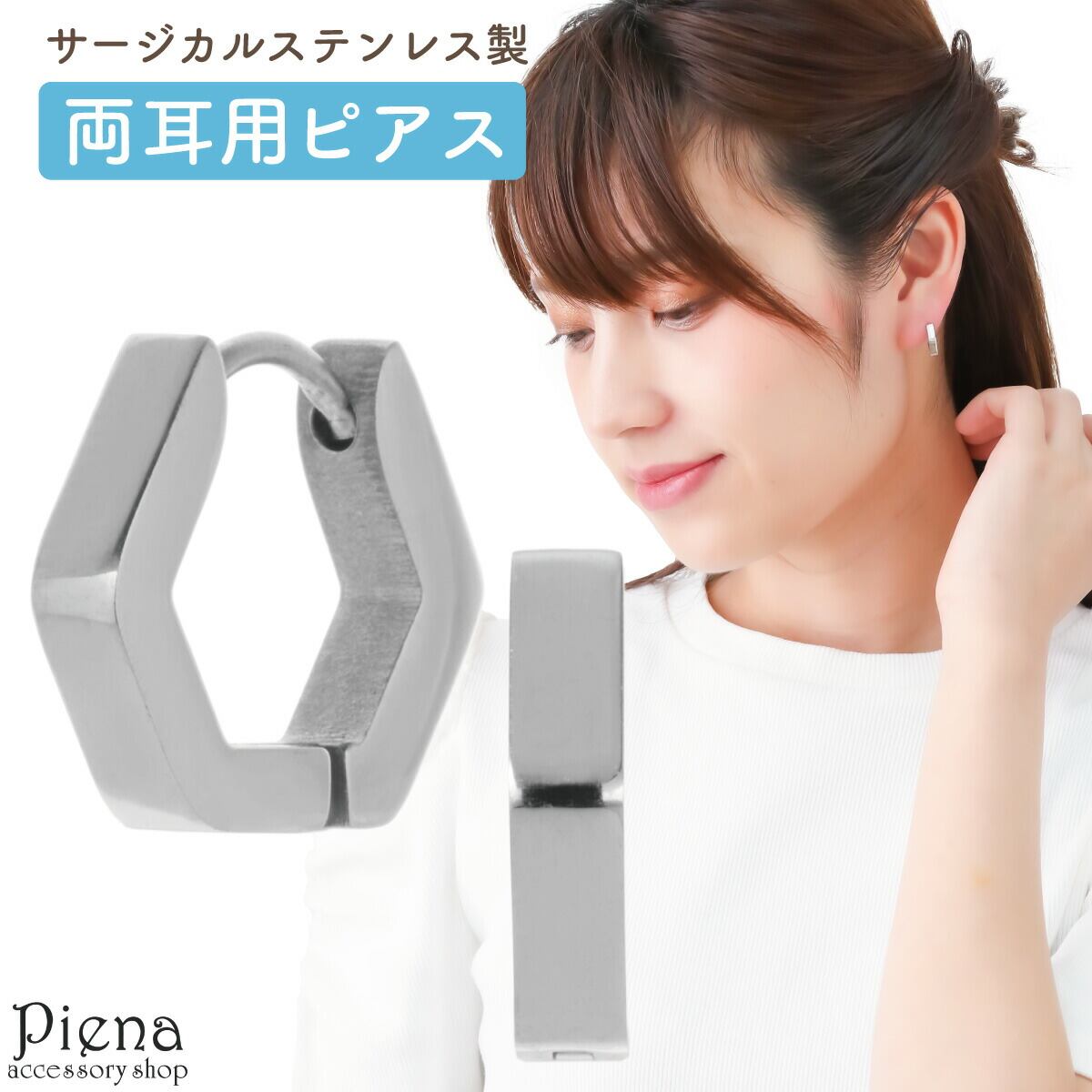 フープピアス つけっぱなし レディース サージカルステンレス製 六角形 ヘキサゴン 中折れ ワンタッチ シンプル お肌に優しい 金属アレルギー対応 上品 オシャレ かわいい 誕生日 記念日 プレゼント ギフト メール便送料無料