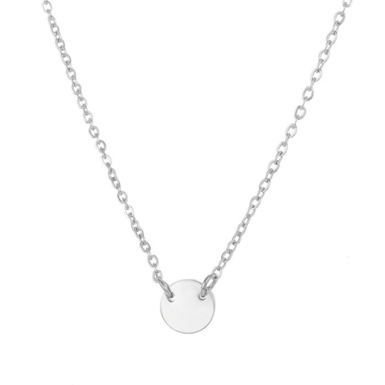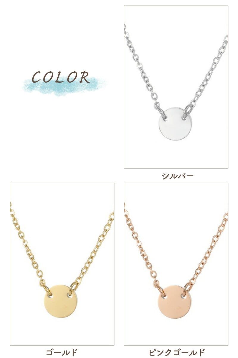 ネックレス レディース サージカルステンレス製 チェーン ミニ 丸型 ラウンド プレート お肌に優しい 金属アレルギー対応 上品 かわいい 大人可愛い 誕生日 記念日 プレゼント ギフト メール便送料無料