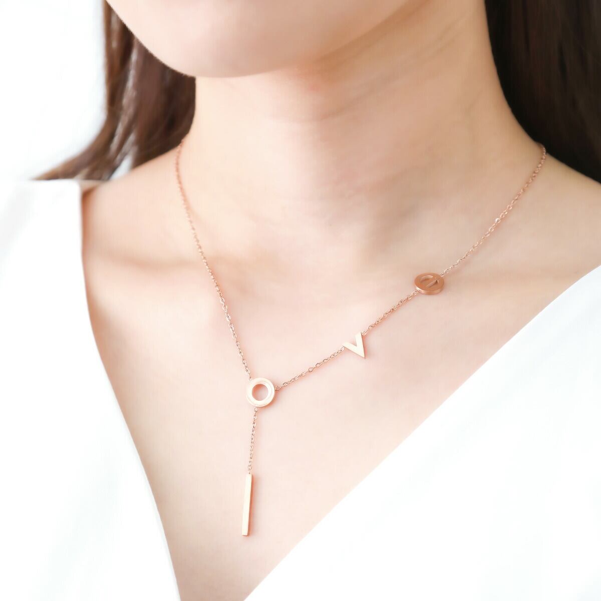 ネックレス ペンダント レディース サージカルステンレス製 LOVE ラブ 文字 メッセージ アルファベット Y字 お肌に優しい 金属アレルギー対応 上品 かわいい 大人可愛い パーティー 誕生日 記念日 プレゼント ギフト メール便送料無料