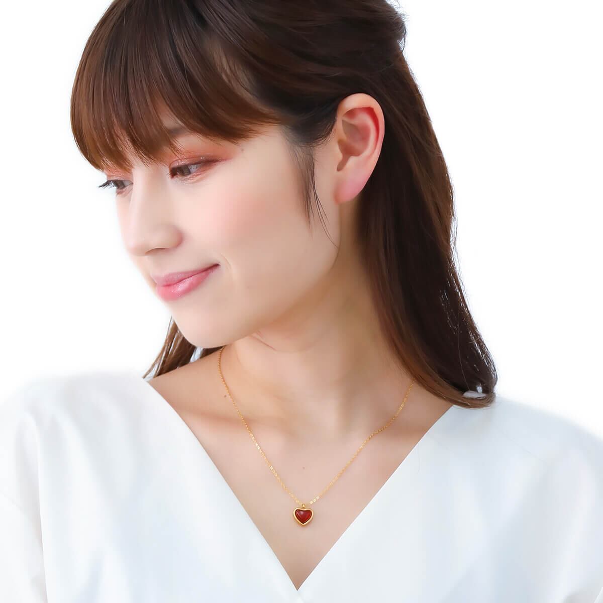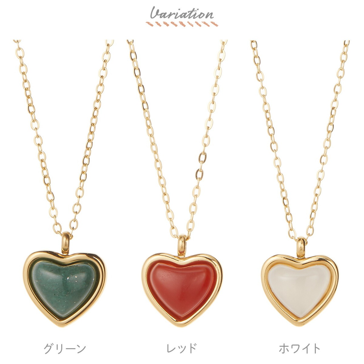 ネックレス レディース サージカルステンレス製 天然石 メノウ ハート モチーフ ゴールド チェーン ストーン ぷっくり ふっくら 立体 シンプル おしゃれ 普段使い パーティー お肌に優しい 金属アレルギー かわいい 大人 誕生日 記念日 プレゼント ギフト メール便送料無料