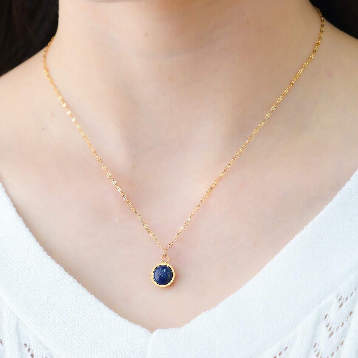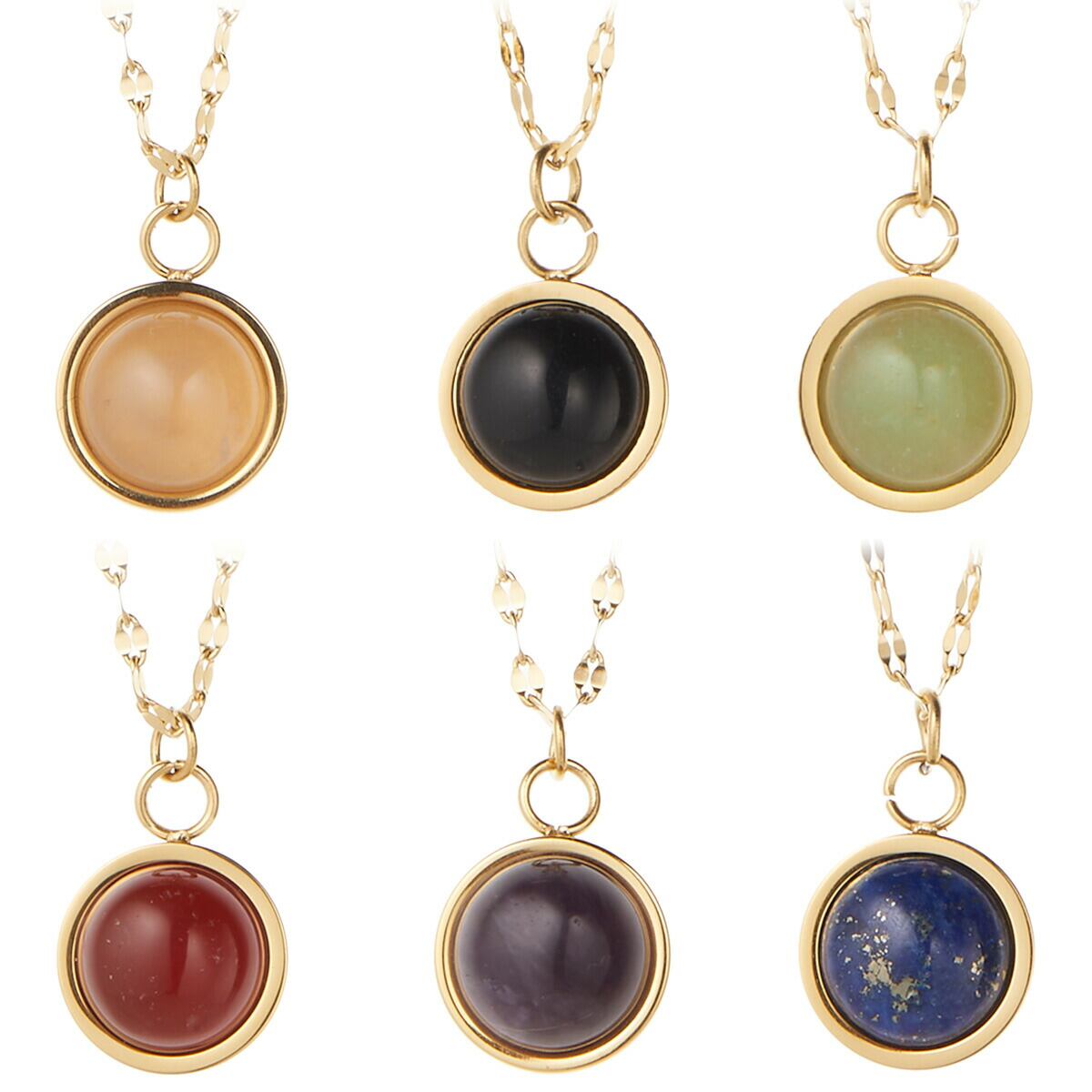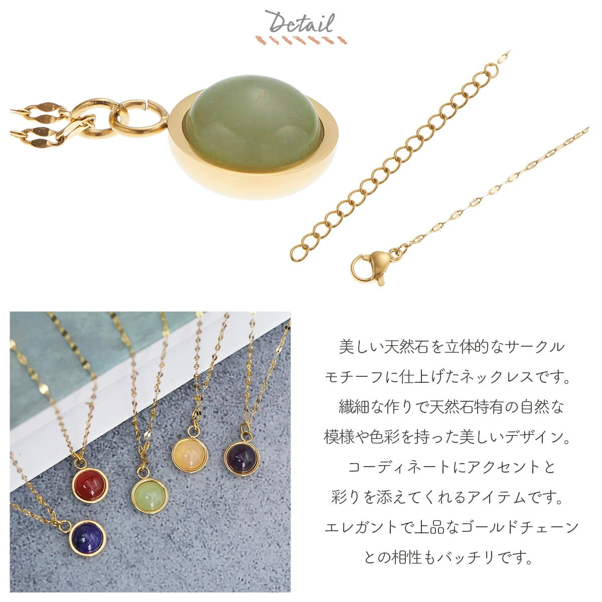 ネックレス レディース サージカルステンレス製 天然石 アマゾナイト ソーダライト 赤メノウ オニキス ローズクオーツ アメジスト 丸 サークル チェーン ストーン ぷっくり ふっくら 立体 おしゃれ お肌に優しい 金属アレルギー 誕生日 プレゼント ギフト メール便送料無料