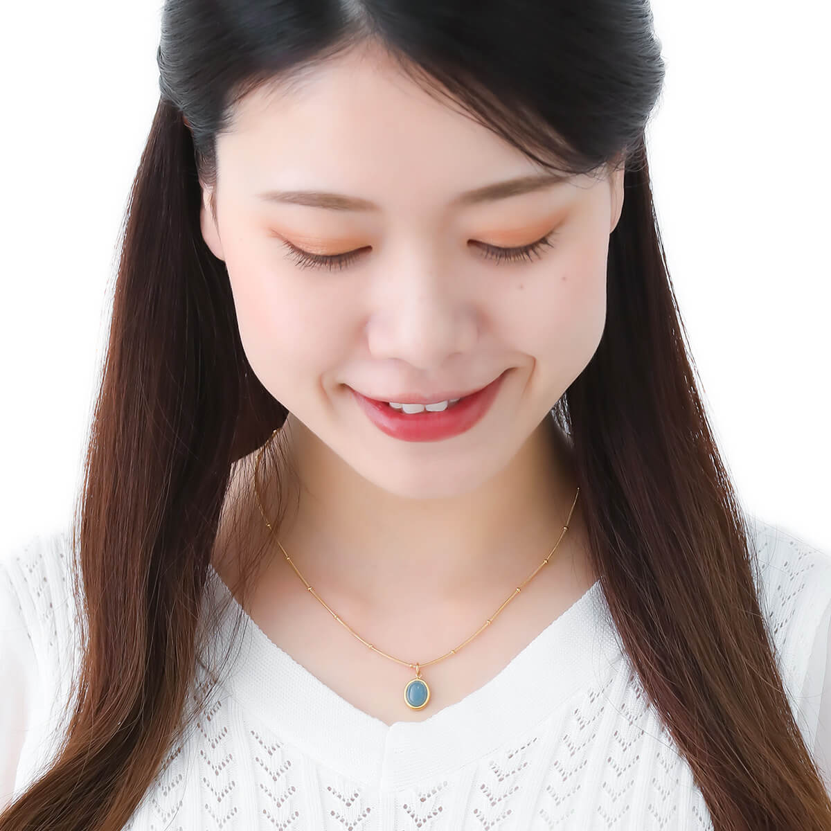 ネックレス レディース サージカルステンレス製 天然石 ブルーメノウ 青 楕円 オーバル モチーフ ミニ 小さめ ゴールド ツイスト ねじれ チェーン ぷっくり ふっくら 立体 シンプル おしゃれ お肌に優しい 金属アレルギー 誕生日 記念日 プレゼント ギフト メール便送料無料