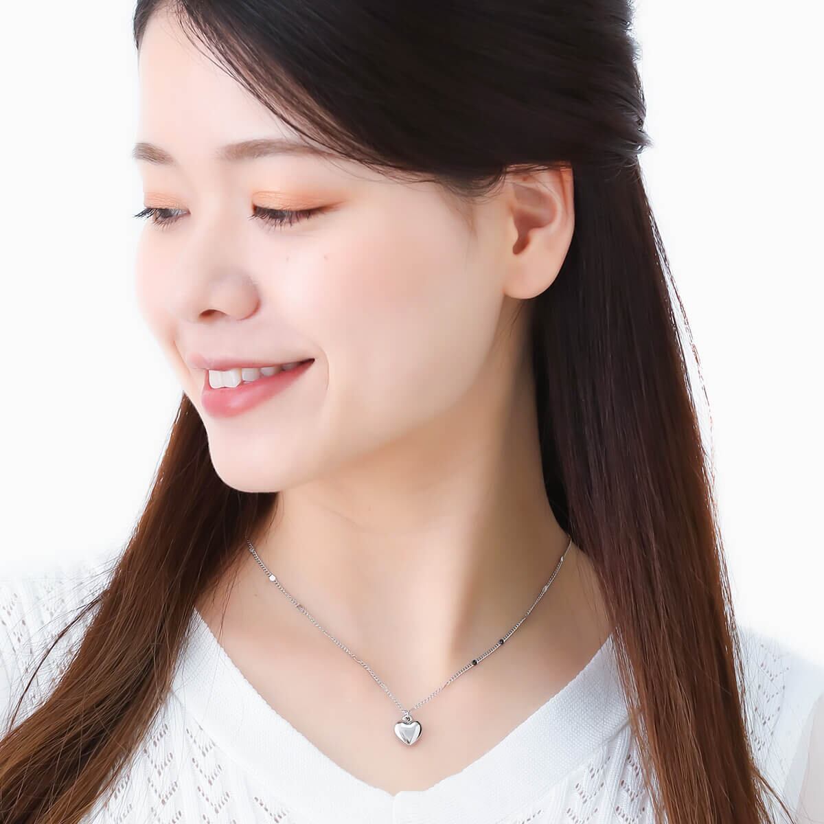 ネックレス レディース サージカルステンレス製 ハート チェーン ぷっくり ふっくら ミニ 小さめ 厚め ツヤ 光沢 立体 シンプル アジャスター付 おしゃれ 普段使い お肌に優しい 金属アレルギー 誕生日 記念日 プレゼント ギフト メール便送料無料