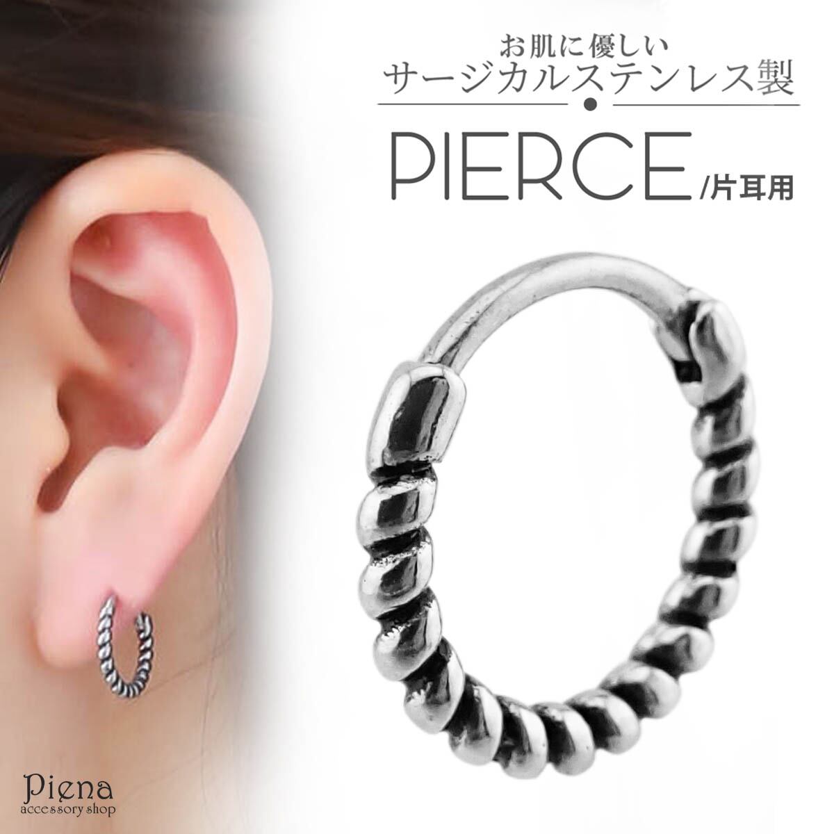 フープピアス つけっぱなし 片耳 1個売り レディース メンズ サージカルステンレス製 ロープ ツイスト ねじり ミニ 小さい 太め 幅広 中折れ シルバー シンプル オシャレ お肌に優しい 金属アレルギー対応 誕生日 記念日 プレゼント ギフト