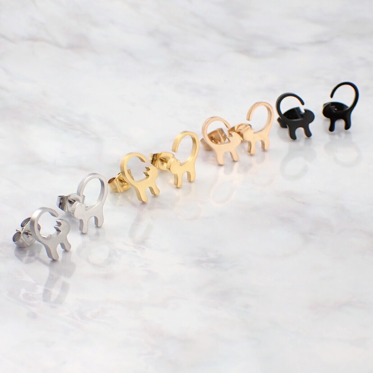 ピアス つけっぱなし レディース サージカルステンレス製 ネコ ねこ 猫 キャット 動物 アニマル シルエット ユニーク 個性的 お肌に優しい 金属アレルギー対応 金アレ 上品 かわいい 大人可愛い 誕生日 記念日 プレゼント ギフト メール便送料無料