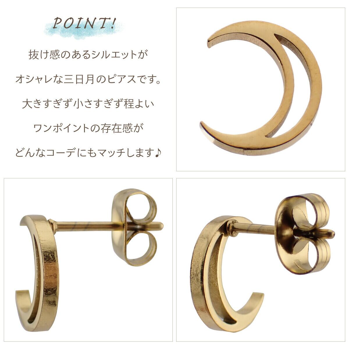 ピアス つけっぱなし レディース サージカルステンレス製 三日月 クレセントムーン シンプル お肌に優しい 金属アレルギー対応 金アレ 上品 かわいい 大人可愛い 誕生日 記念日 プレゼント ギフト メール便送料無料