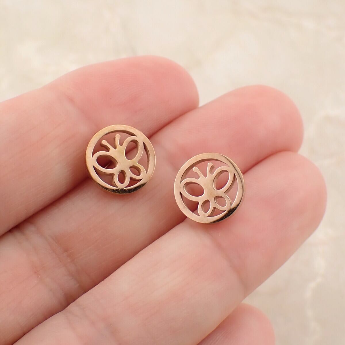 ピアス つけっぱなし レディース サージカルステンレス製 蝶 バタフライ ちょうちょ 蝶々 ラウンド シンプル お肌に優しい 金属アレルギー対応 金アレ 上品 かわいい 大人可愛い 誕生日 記念日 プレゼント ギフト メール便送料無料