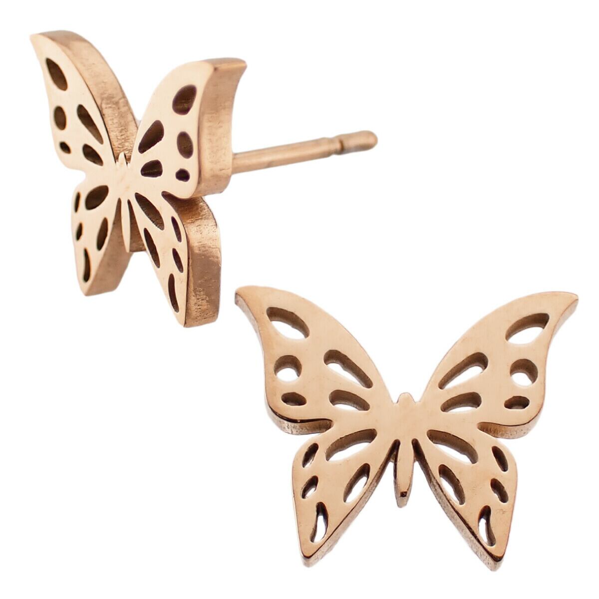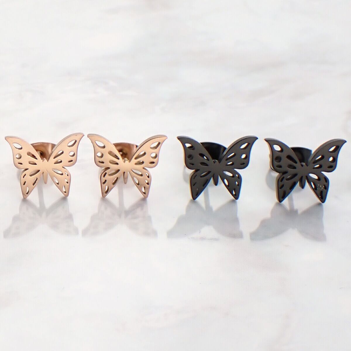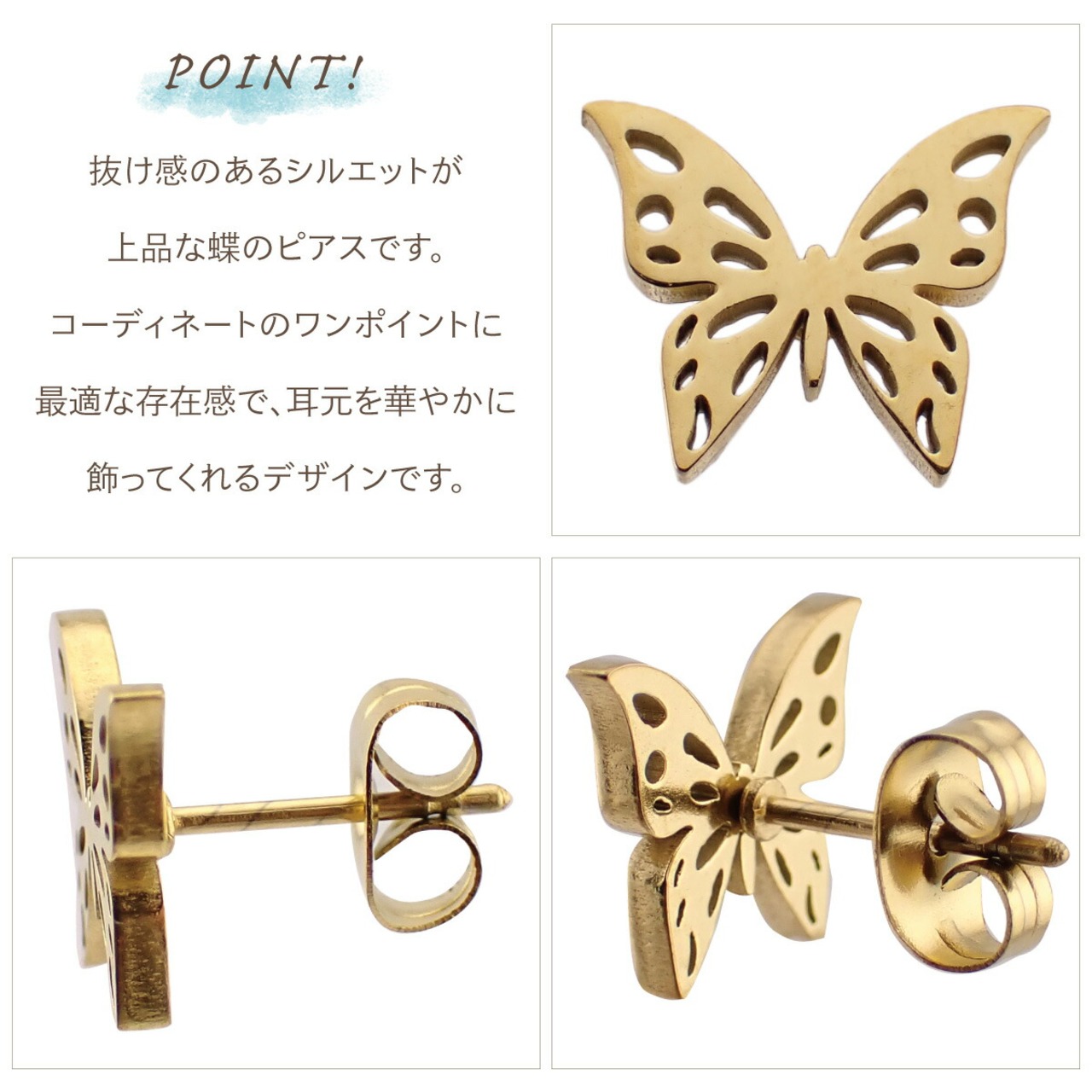 ピアス つけっぱなし レディース サージカルステンレス製 蝶 バタフライ ちょうちょ 蝶々 シンプル シルエット お肌に優しい 金属アレルギー対応 金アレ 上品 かわいい 大人可愛い 誕生日 記念日 プレゼント ギフト メール便送料無料
