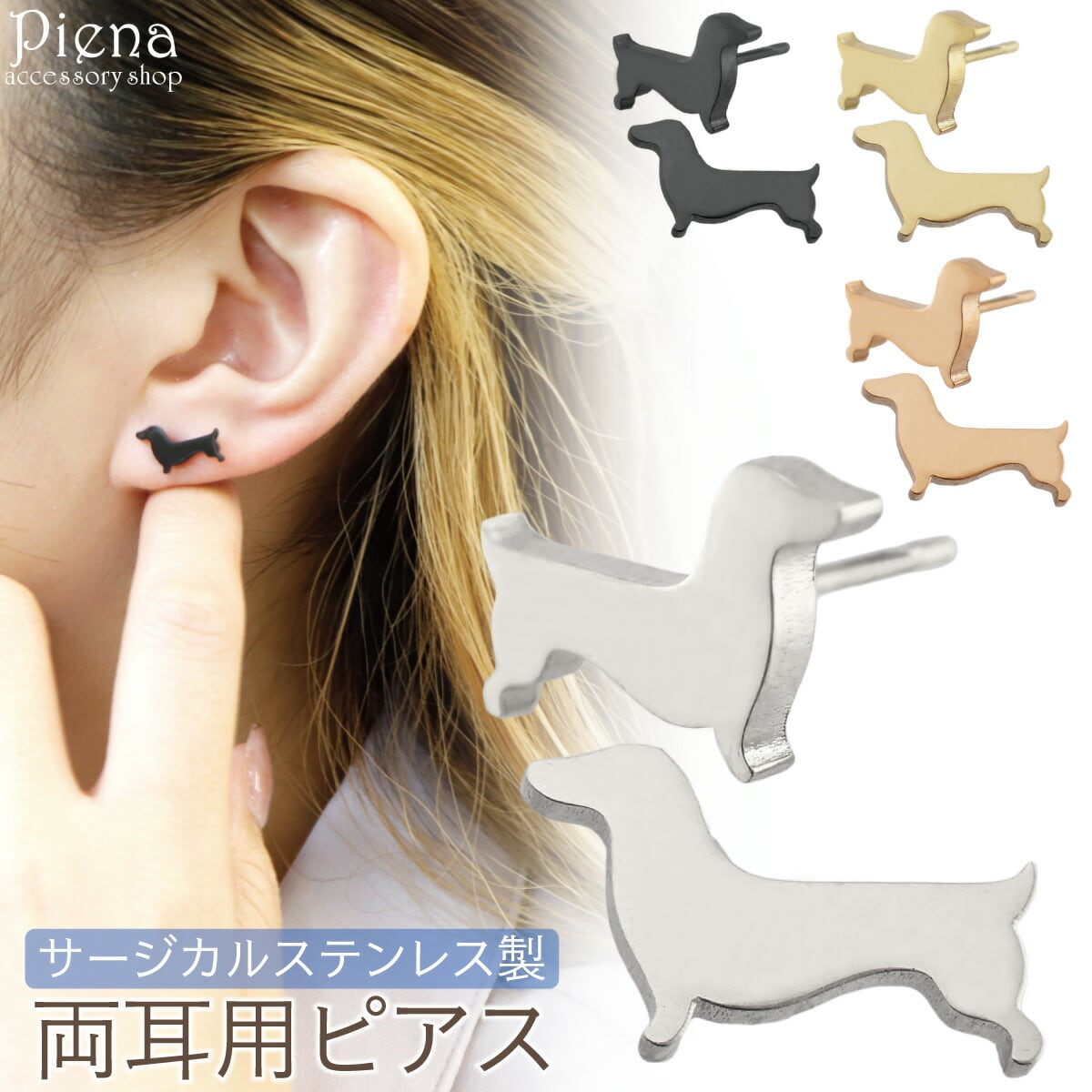 ピアス つけっぱなし レディース サージカルステンレス製 犬 ドッグ ダックスフント 動物 アニマル 小型犬 シルエット シンプル お肌に優しい 金属アレルギー対応 金アレ 上品 かわいい 大人可愛い 誕生日 記念日 プレゼント ギフト メール便送料無料