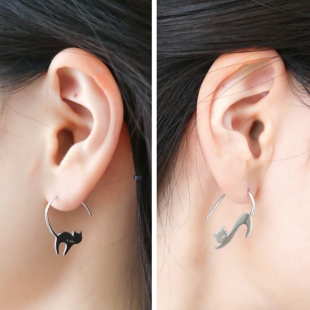 フックピアス レディース 猫 ネコ 動物 キャット 揺れる 左右非対称 アシンメトリー お肌に優しい 金属アレルギー対応 上品 かわいい パーティー ユニーク 誕生日 記念日 プレゼント ギフト メール便送料無料