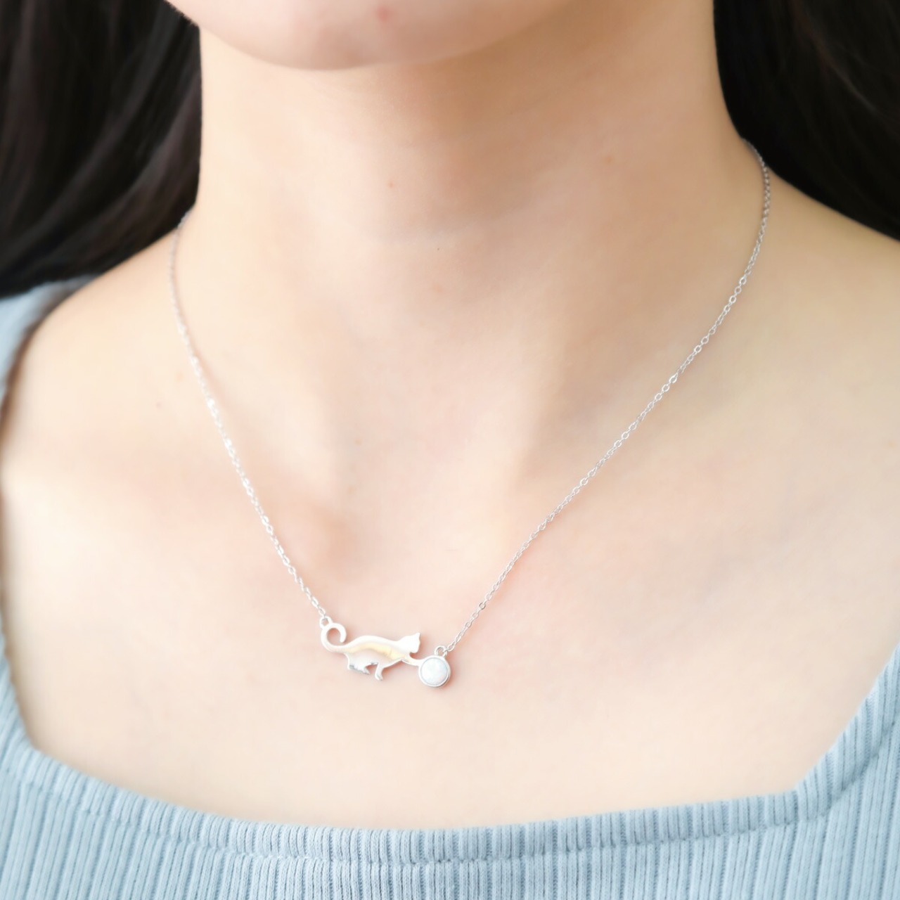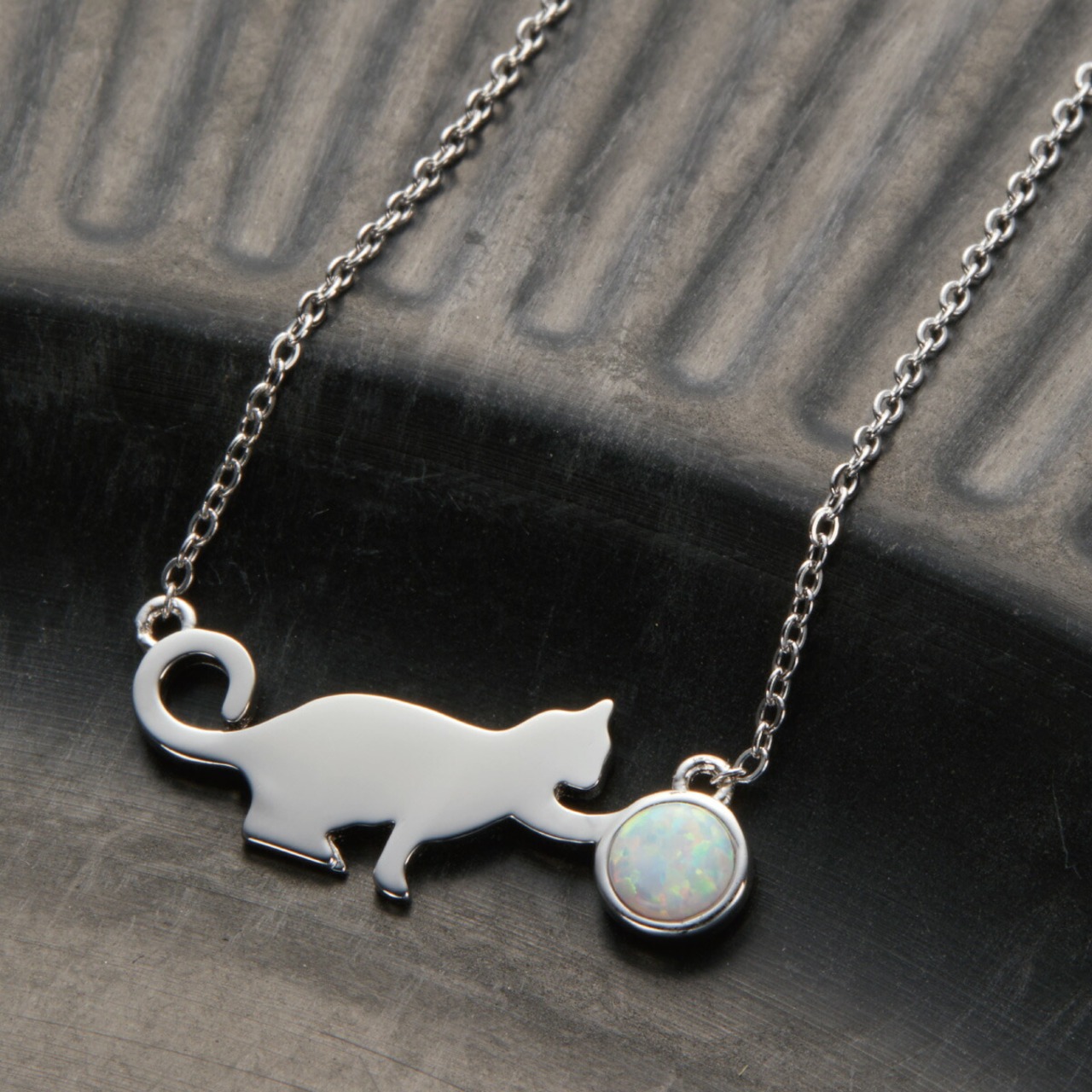 ネックレス ペンダント レディース シルバー925 オパール 猫 キャット 動物 アニマル お肌に優しい 金属アレルギー対応 かわいい オシャレ パーティー 誕生日 記念日 プレゼント ギフト メール便送料無料