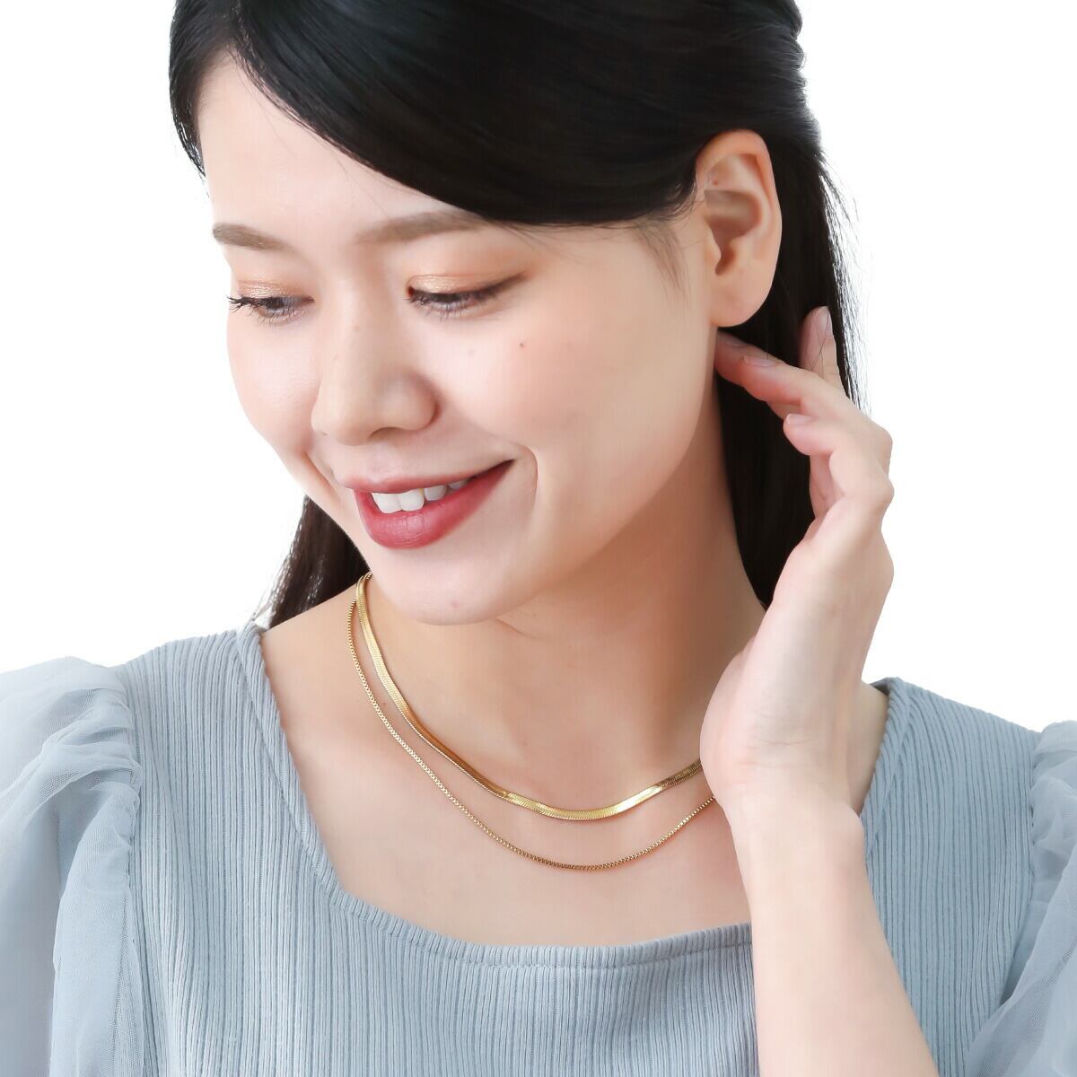 ネックレス レディース サージカルステンレス製 2連 スネークチェーン ボックスチェーン シンプル お肌に優しい 金属アレルギー対応 かわいい オシャレ パーティー 誕生日 記念日 プレゼント ギフト メール便送料無料