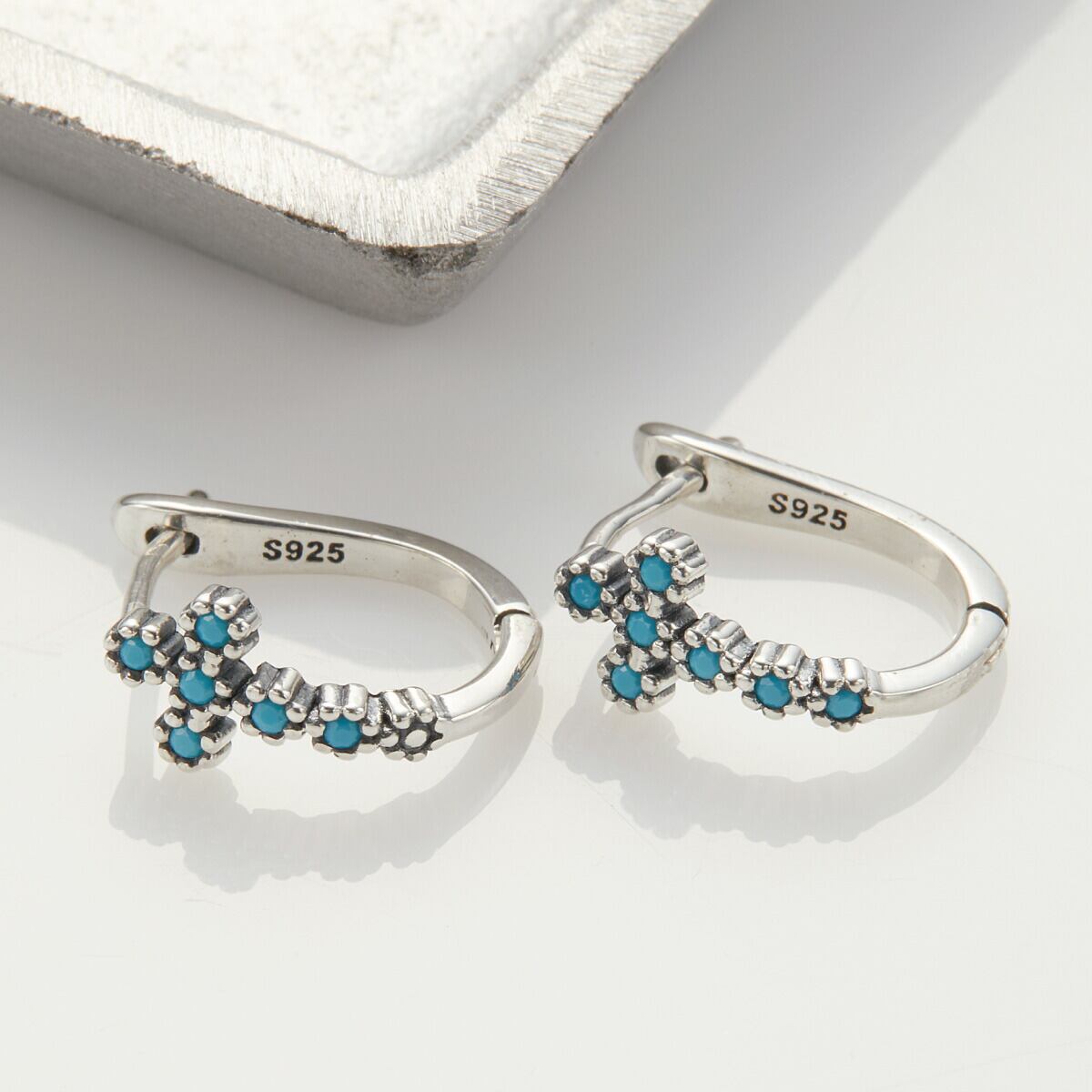 フープピアス レディース メンズ シルバー925 ターコイズ 十字架 クロス シンプル ミル打ち お肌に優しい 金属アレルギー対応 かわいい オシャレ パーティー 誕生日 記念日 プレゼント ギフト メール便送料無料