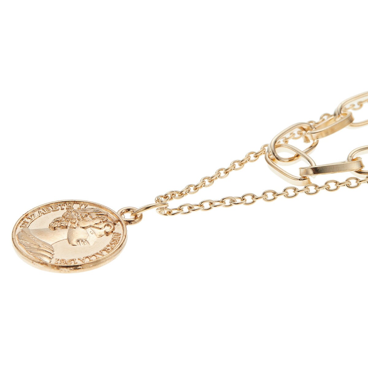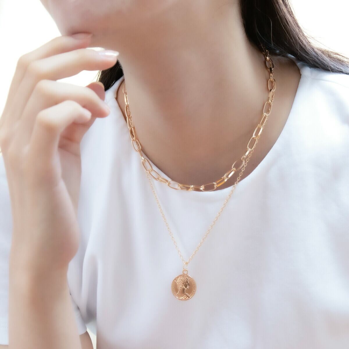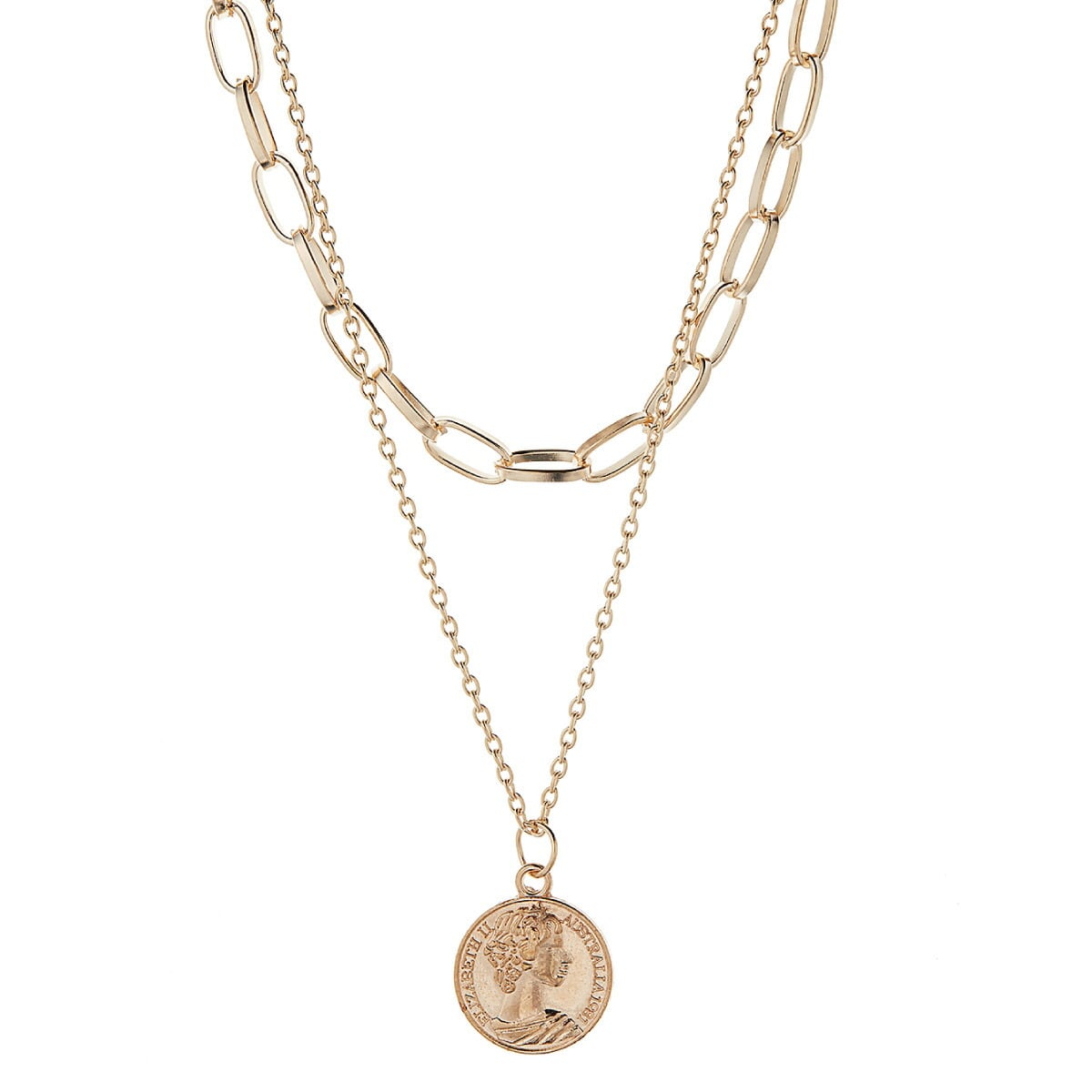 二連ネックレス ペンダント コイン 2連 二連チェーン コイン 硬貨 エリザベス リバーシブル シンプル ラウンド 丸型 上品 記念日 誕生日 プレゼント ギフト メール便送料無料