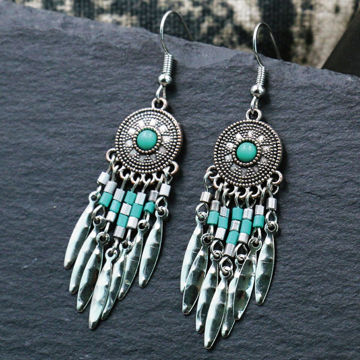 ピアス フック レディース 両耳用 サージカルステンレスフック ネイティブ ターコイズ タッセル 揺れる 大ぶり お肌に優しい 金属アレルギー対応 かわいい オシャレ 誕生日 記念日 プレゼント ギフト メール便送料無料