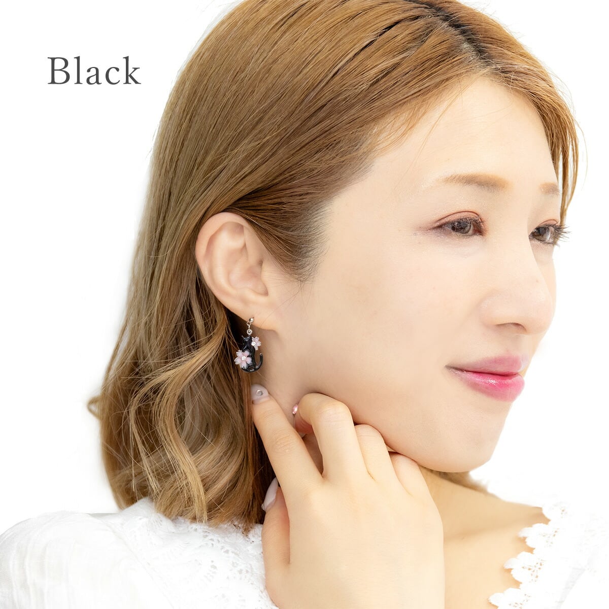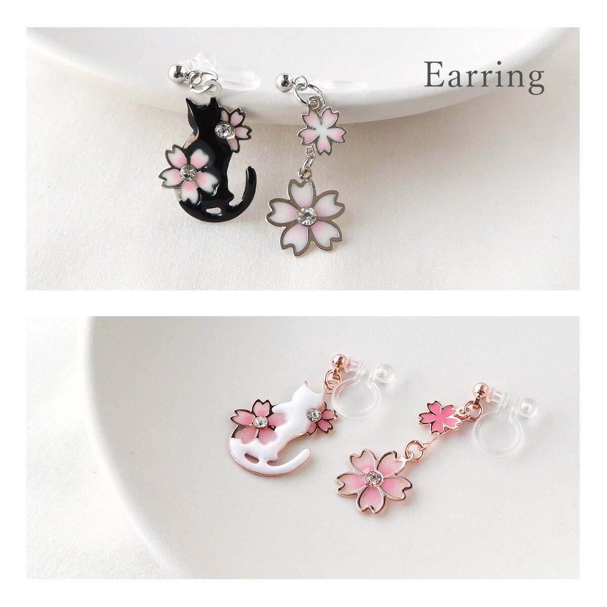 繊細に作り込まれた桜のモチーフと、遊び心をくすぐる猫のシルエットが耳元で優しく揺れ、見る人を惹きつけます。
