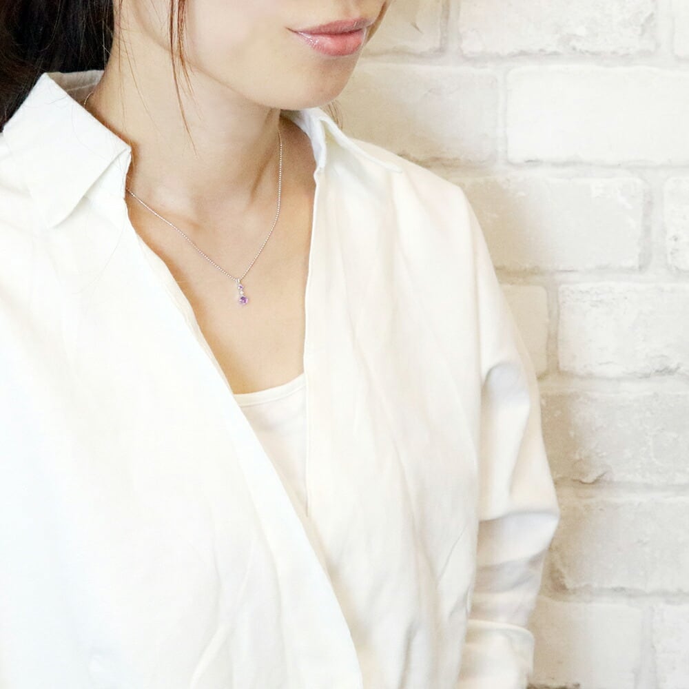ネックレス レディース アメジスト スリーストーン 天然ダイヤモンド シルバー925 2月の誕生石 ジュエリーケース 宝石鑑別書カード 送料無料 紫水晶 春夏秋冬 大人気 あす楽