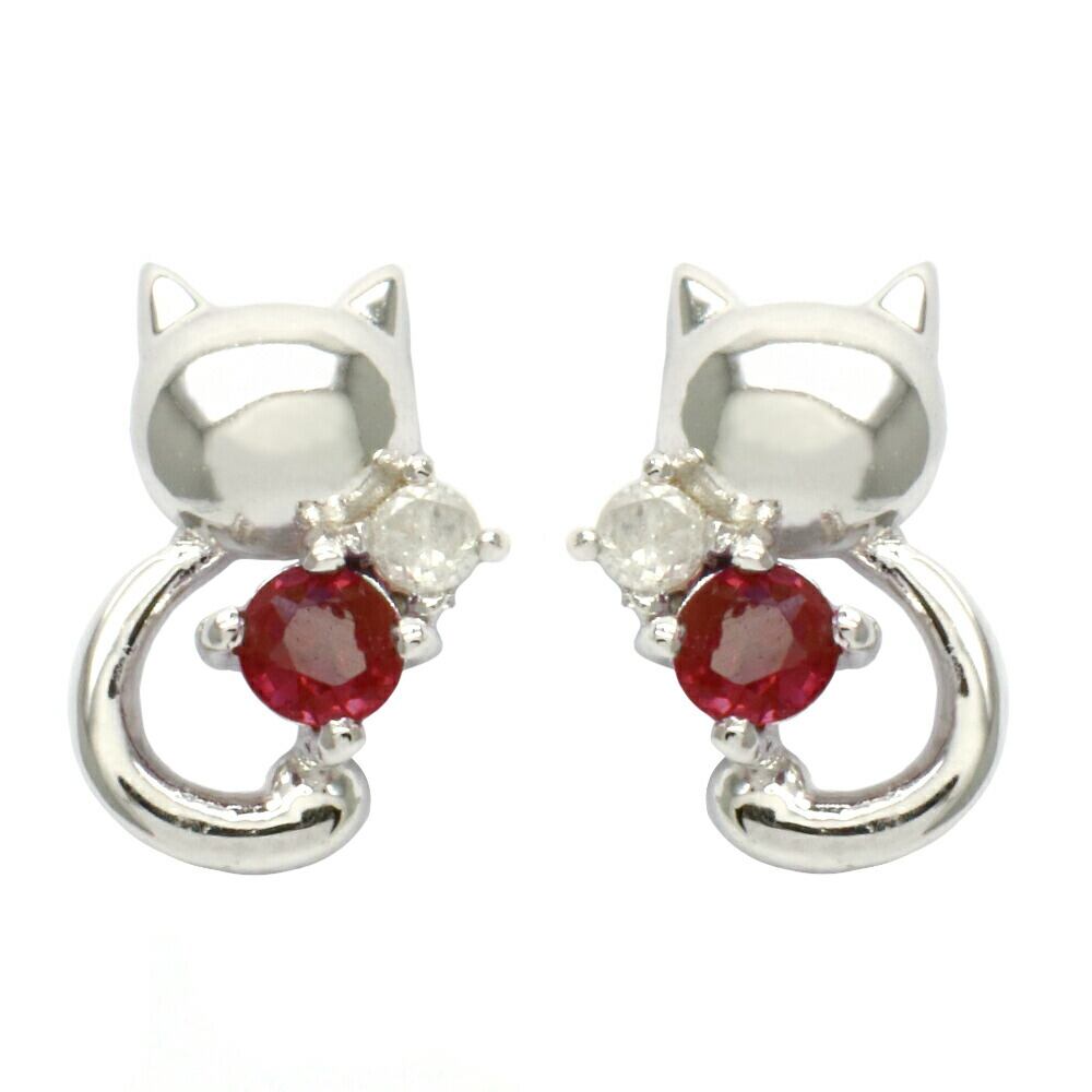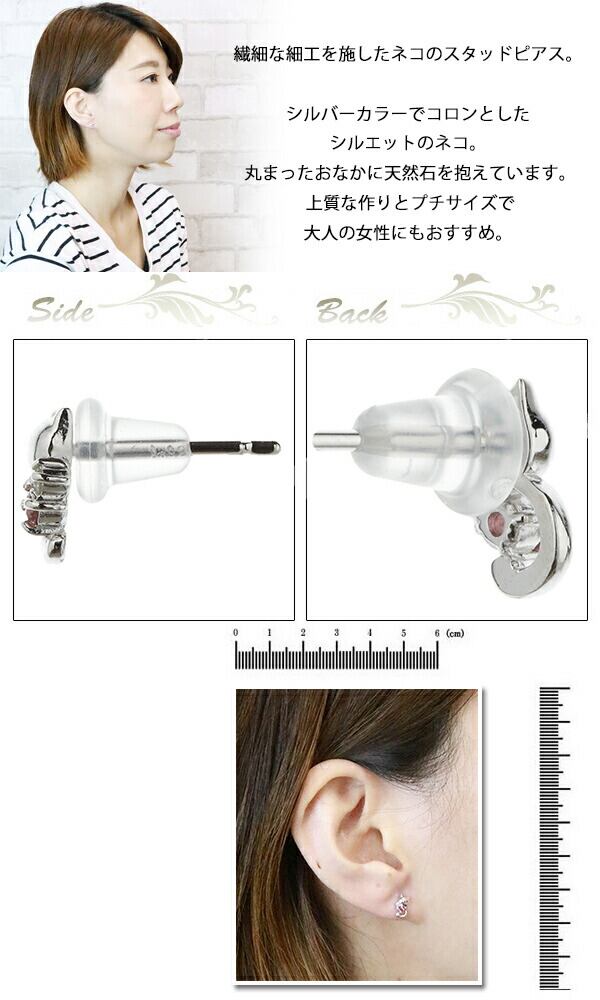 丸まったしっぽねこの天然石ピアス ダイヤモンド 誕生石 ネコ 仔猫 CAT プチサイズ 小さめ パワーストーン 大人可愛い レディース ギフト用にも メール便送料無料 プレゼント 春夏秋冬 大人気 あす楽