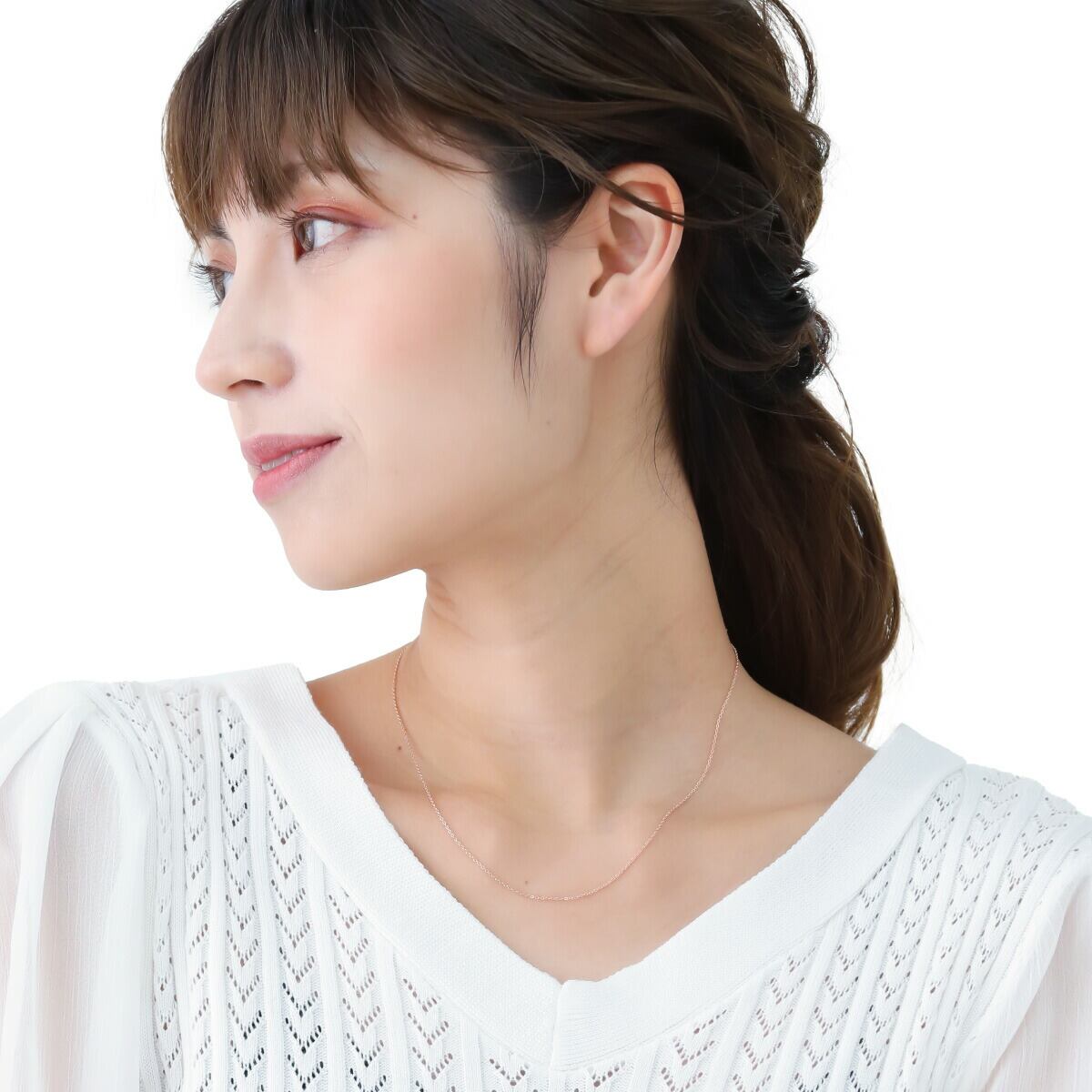 繊細でさりげない存在感を与えるアズキチェーンのネックレス。
