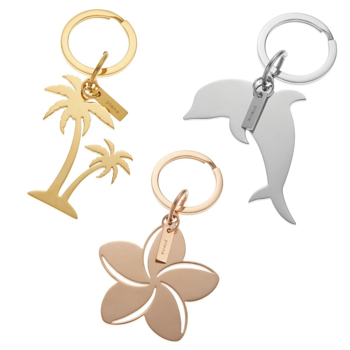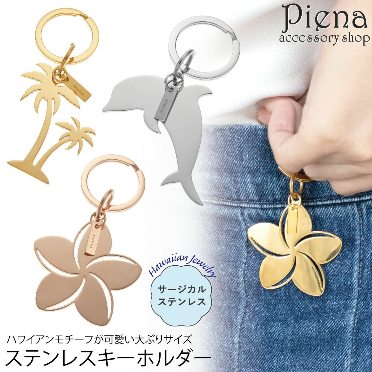 キーホルダー キーリング レディース メンズ ft-0044-002 サージカルステンレス製 ハワイアンジュエリー ハワジュ ビッグサイズ 大ぶり イルカ 動物 プルメリア ヤシの木 パームツリー プレート シルエット お肌に優しい 金属アレルギー対応 誕生日 記念日 プレゼント メール便送料無料