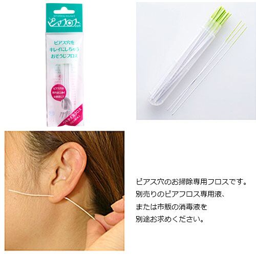 別売りのピアフロス専用液、または市販の消毒液を別途お求めください。