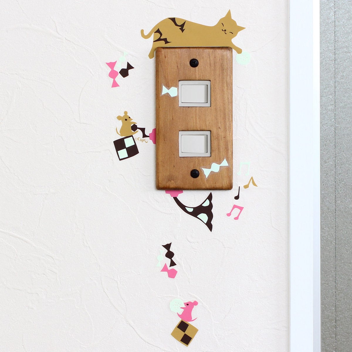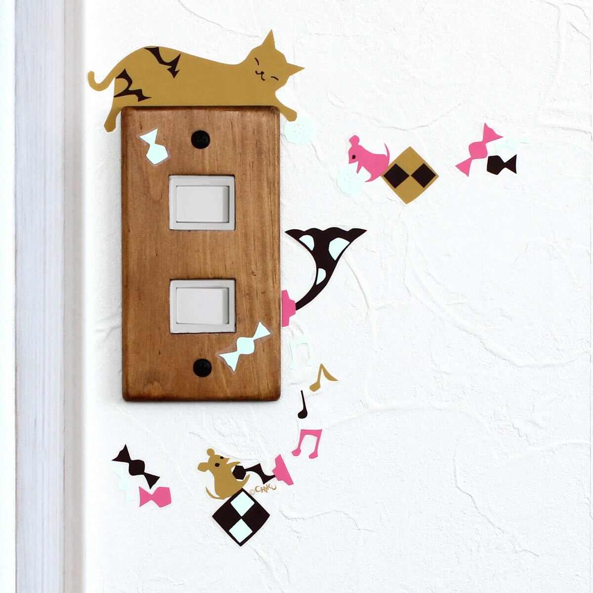 ウォールステッカー 猫のうたた寝シンフォニー 蛍光 スイッチ用ステッカー 光る ハウスジーダ 張ってはがせる模様替え DIY 21センチ