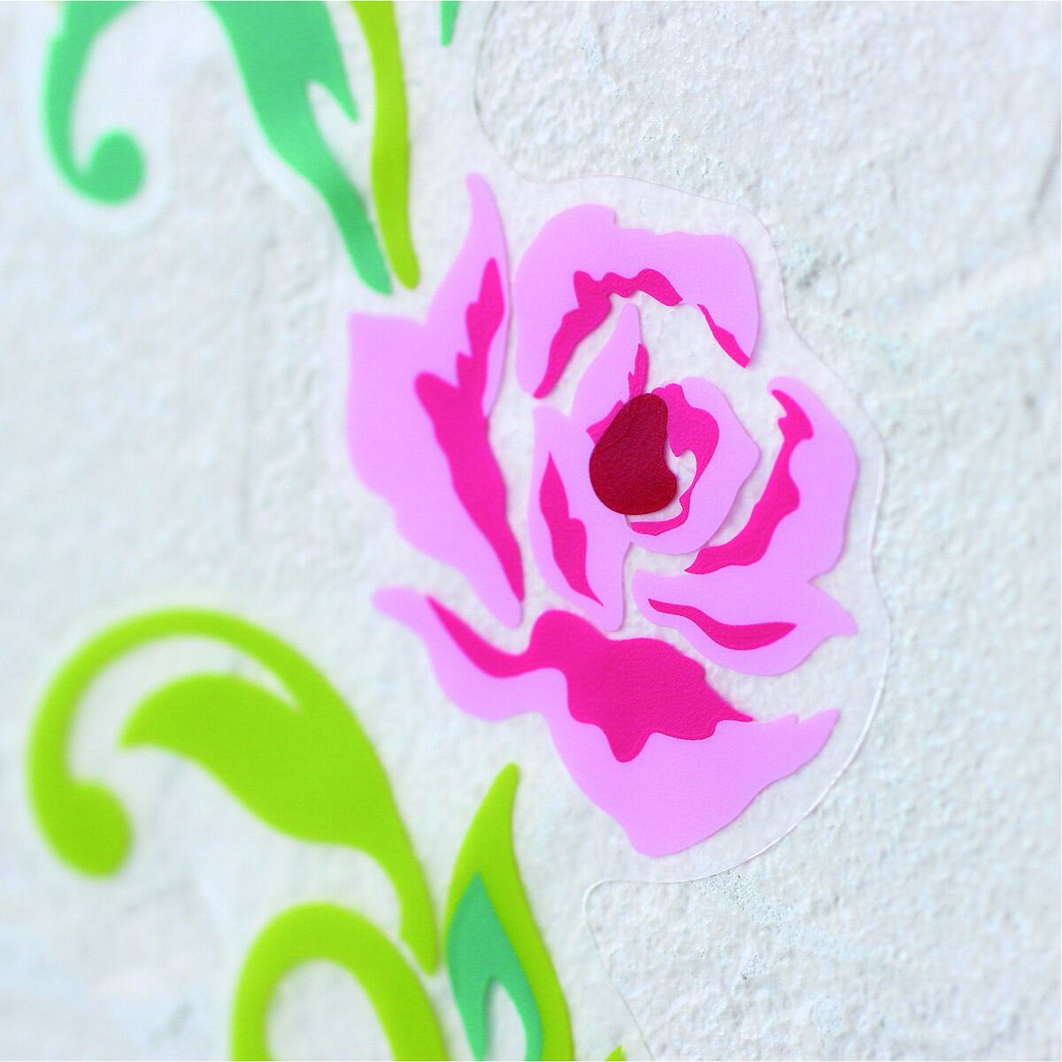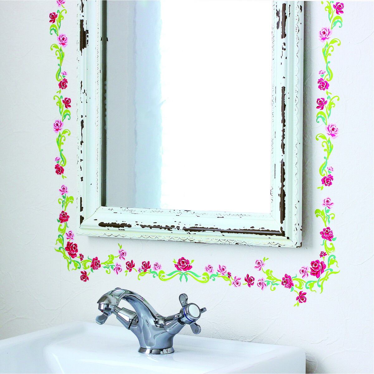 ウォールステッカー 消臭 抗菌 貼ってはがせる バラの淵飾り ハウスジーダ 窓ガラス 壁面 シール お部屋の模様替え おしゃれ 植物 薔薇 ツタ ローズ ピンク