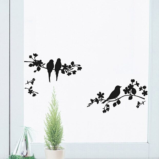ウォールステッカー ガラス専用ステッカー ハウスジーダ Haus gida 森の中のことり 小鳥モチーフ モノトーンカラー リビング雑貨 メール便 送料無料 プレゼント 春夏秋冬 大人気