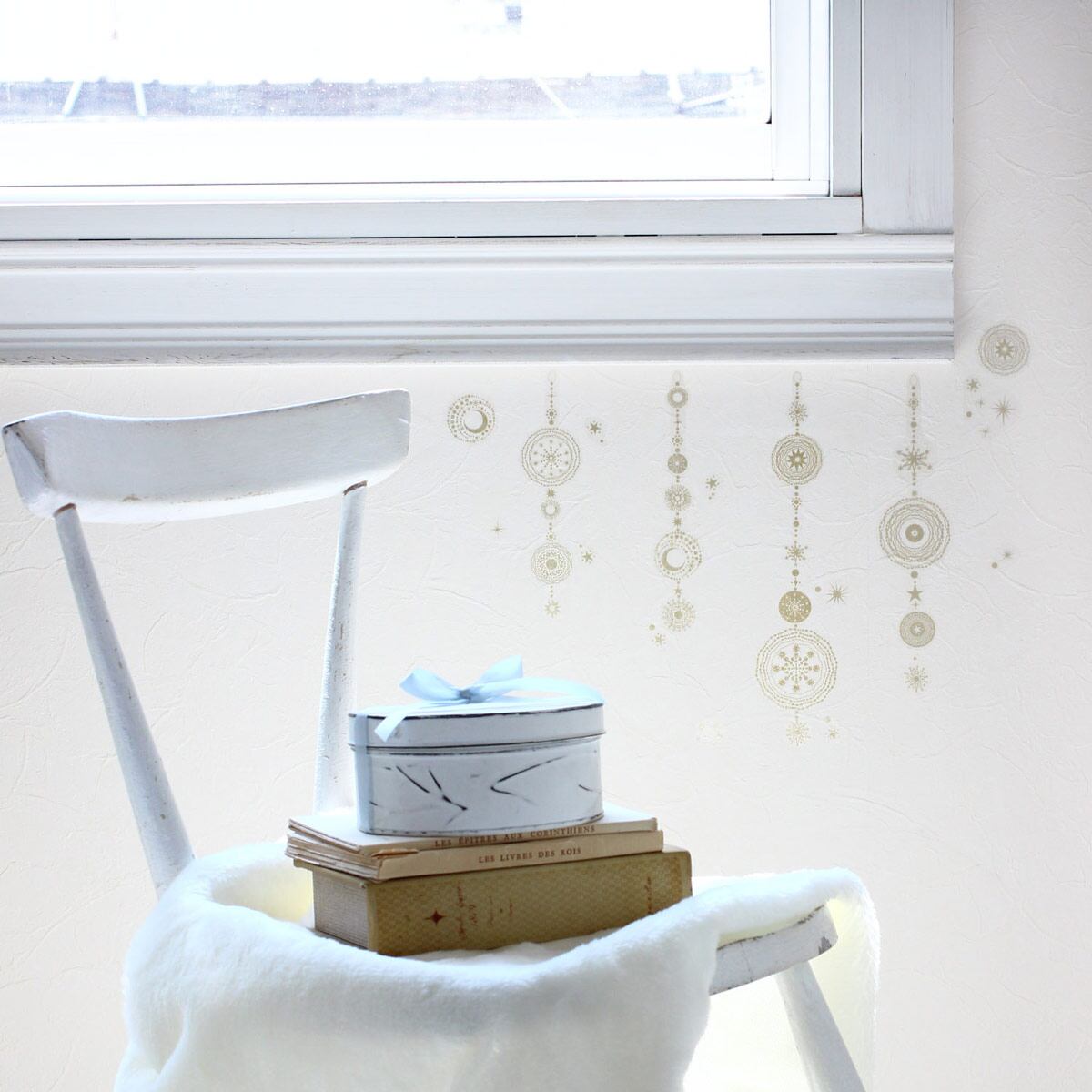 ウォールステッカー きらきら丸いオーナメント 金色グリッター ハウスジーダ 張ってはがせる インテリア 吊るし飾り DIY A4
