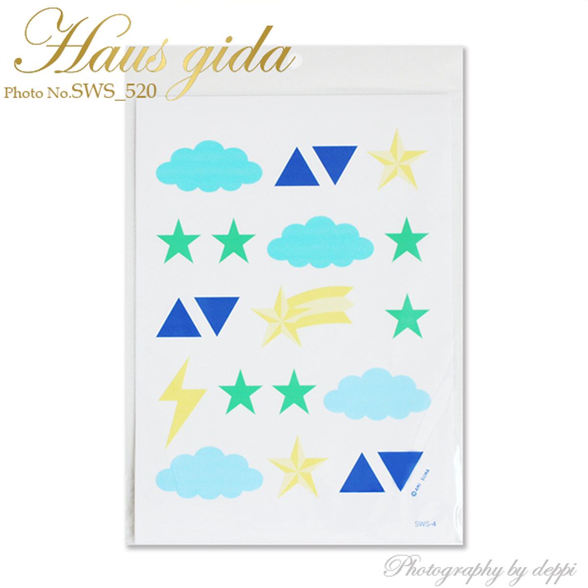 シートサイズはA4で、中央の流れ星が約縦43mm、横70mmです。
