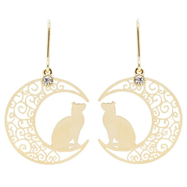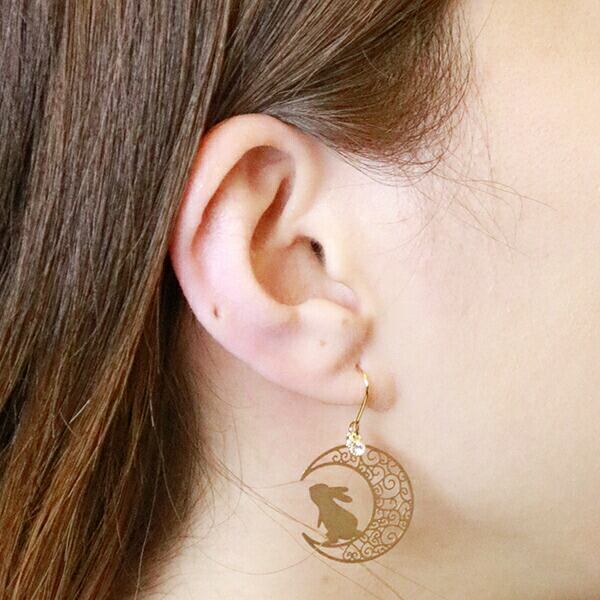 フックピアス つけっぱなし レディース 月 三日月 ムーン ステンレス 金属アレルギー対応 ウサギ ネコ 子猫 兎 動物 アニマル ゴールド ラインストーン 可愛い メール便 送料無料 プレゼント 春夏秋冬 大人気