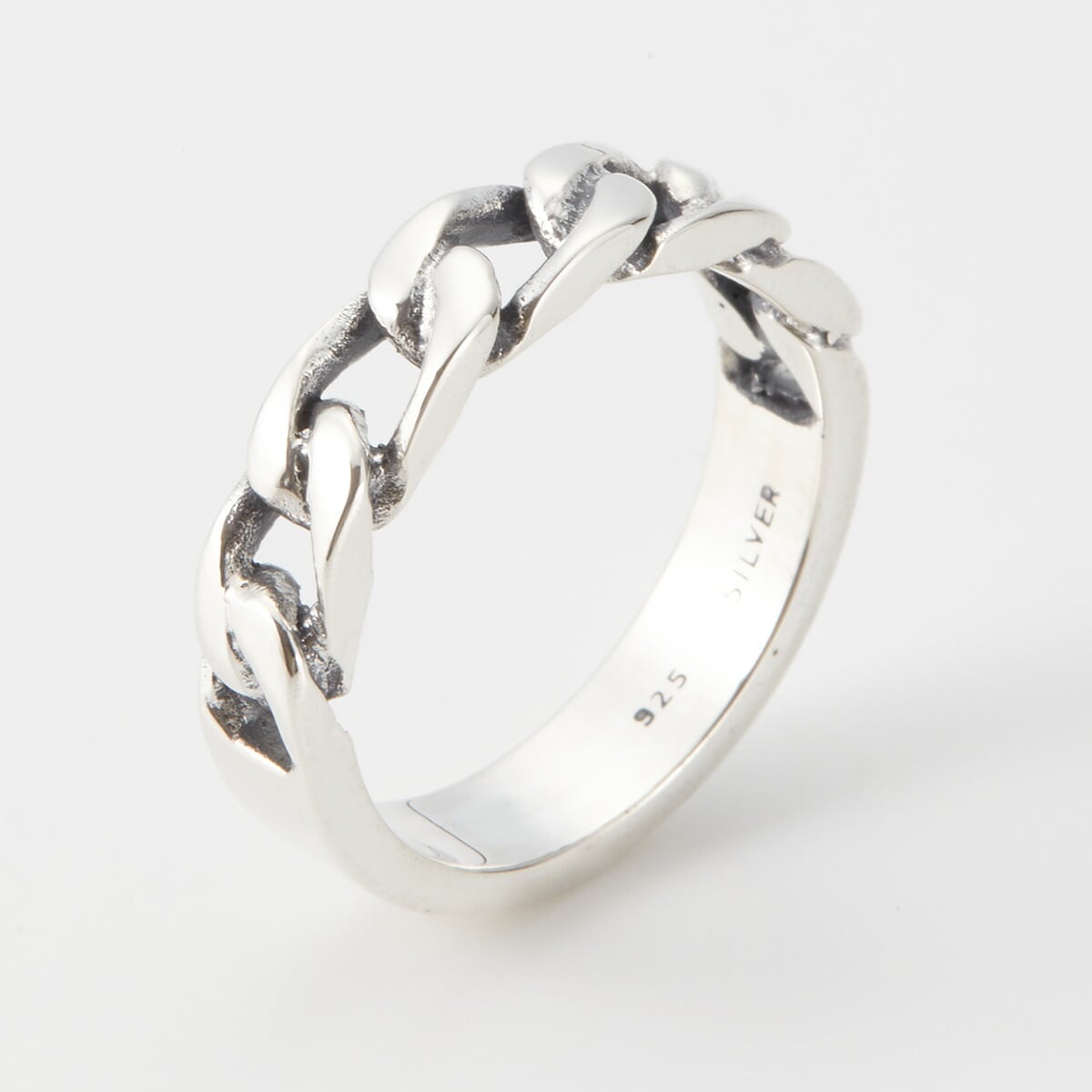 燻し加工を施したチェーンデザインのシルバー925製デザインリングです。