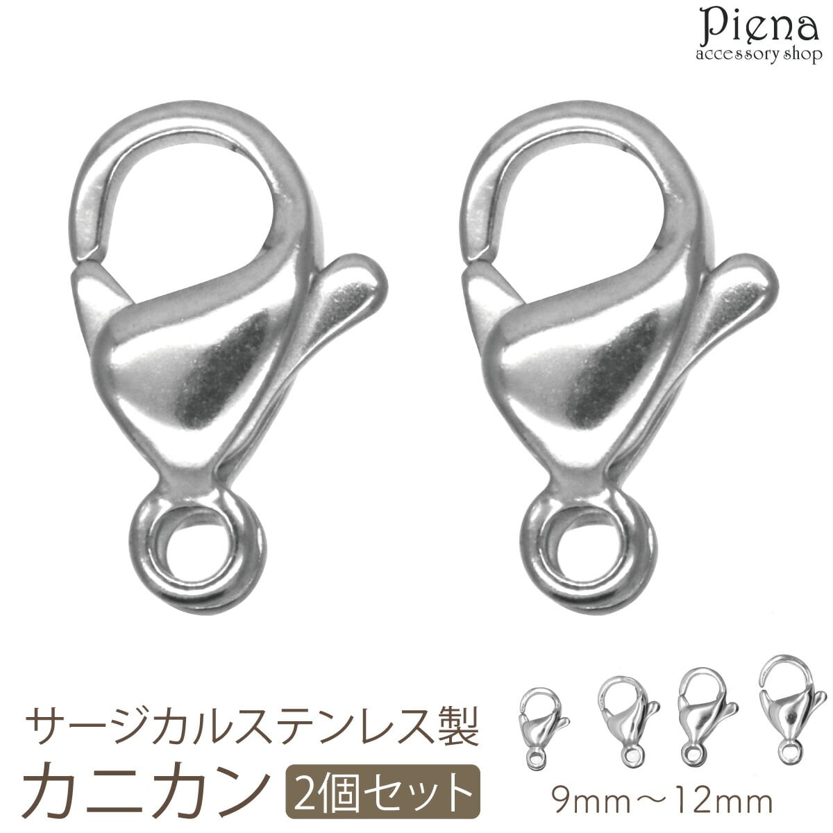 カニカン レディース メンズ サージカルステンレス製 2個セット パーツ 金具のみ 留め具 9mm 10mm 11mm 12mm お肌に優しい 低金属アレルギー対応 ハンドメイド DIY 手作り 接続パーツ アクセサリー作り オリジナル作成