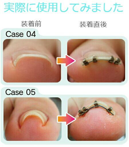 2本の形状記憶合金ワイヤー(0.35mm)が湾曲の強い爪端に確実にかかり強力に矯正出来ます。