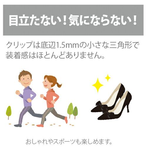 クリップの幅は1.5mmと小さく、装着感はほとんどありません。スポーツもOK