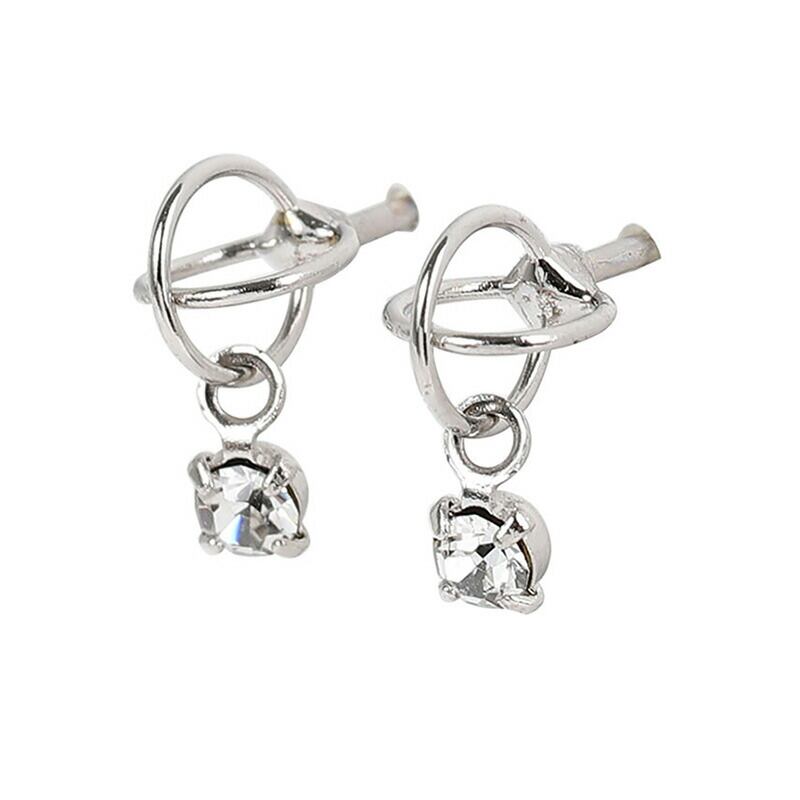 小さなリングを重ねたモチーフにストーンをセットしたスタッドピアス