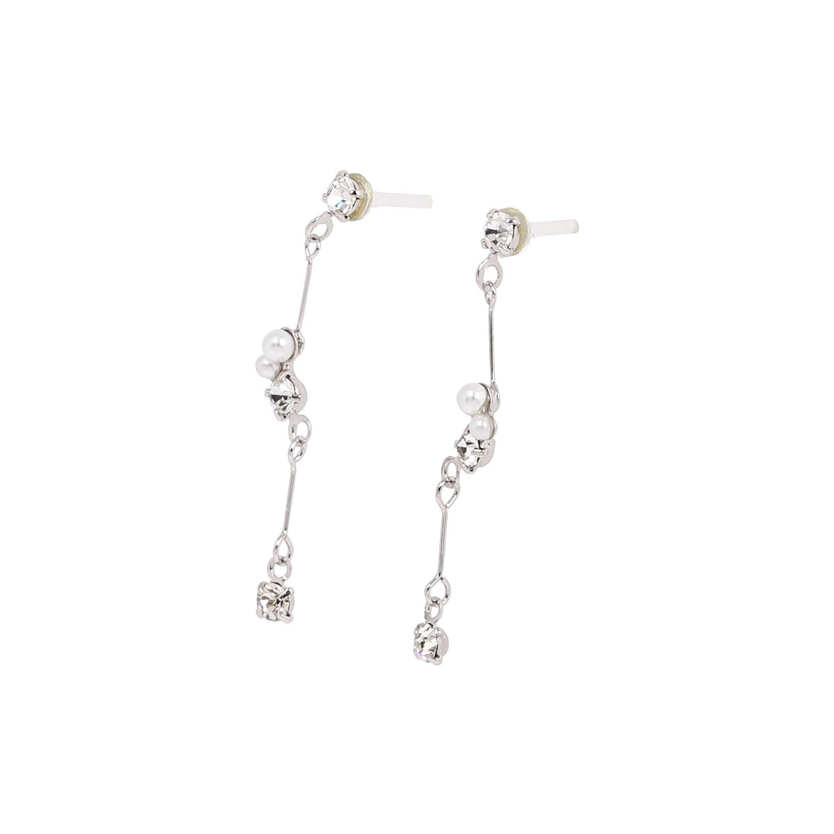 スタッドピアス レディース フェイクパール 真珠 ノンアレルギー 金属アレルギー 日本製 国産 安心 ロング 長め 細い 細め キャッチ 揺れる シンプル おしゃれ 華奢 上品 可愛い シルバー ゴールド ピンクゴールド プレゼント ギフト ラッピング メール便 送料無料