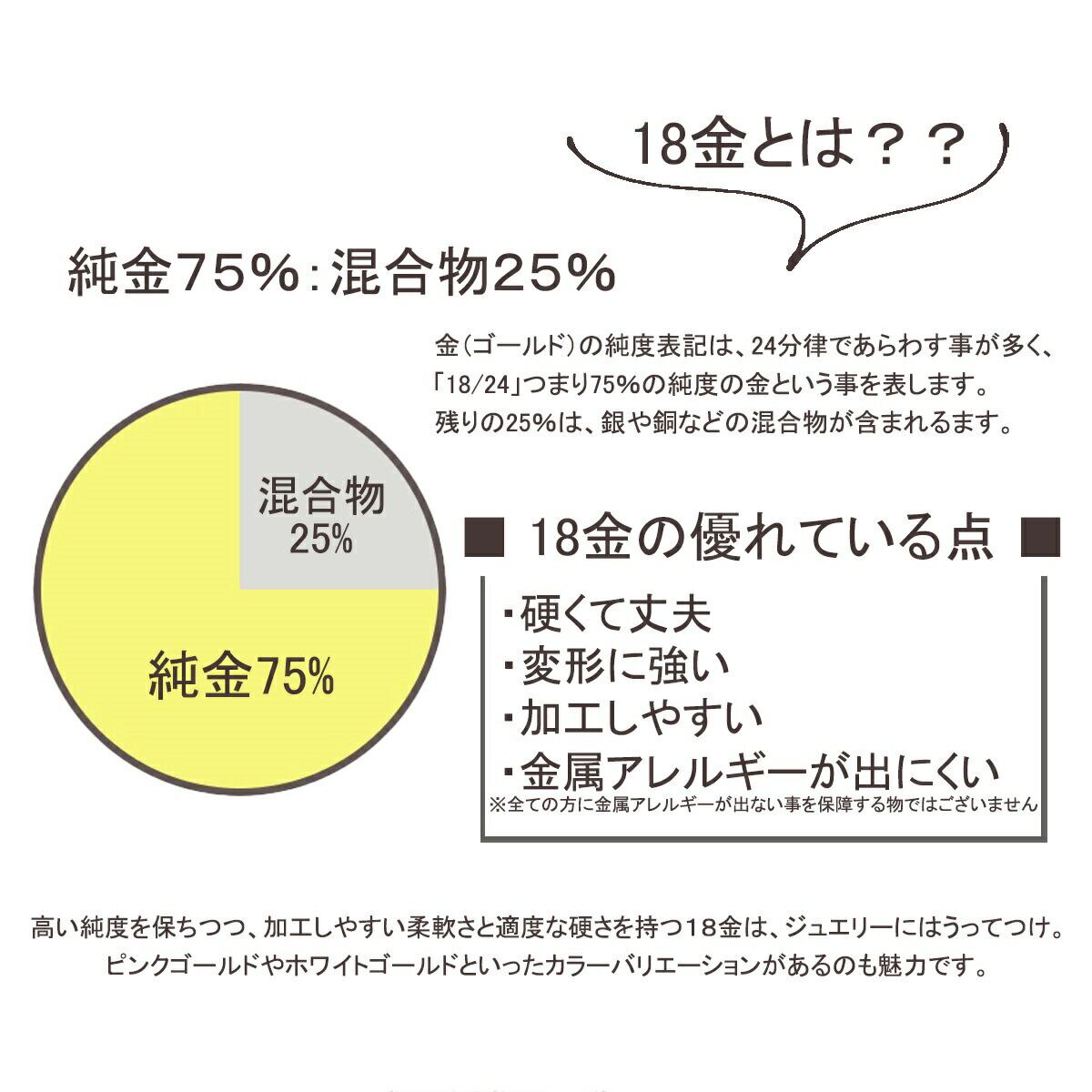 鍍金部分が肌に触れませんので金属アレルギーの方にも