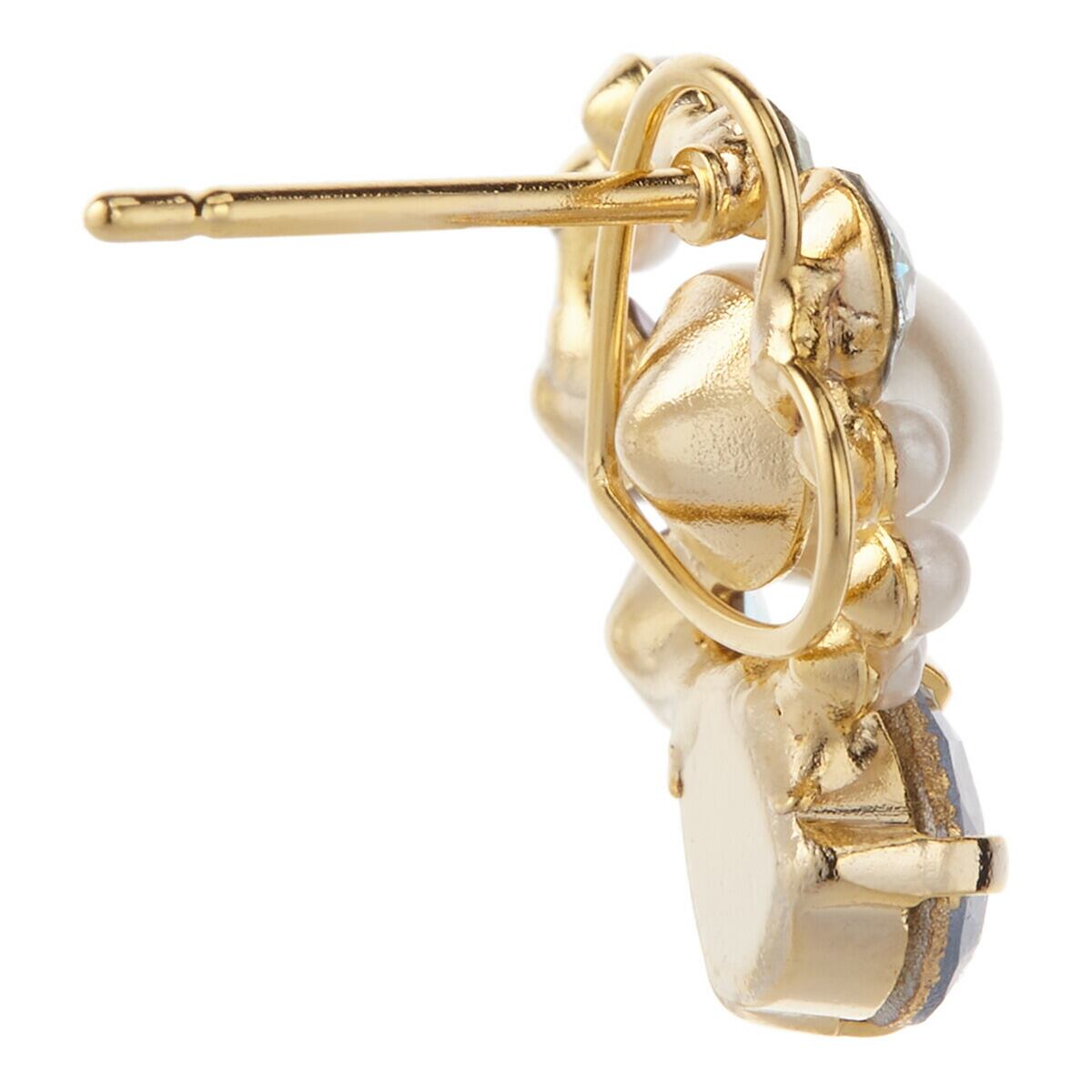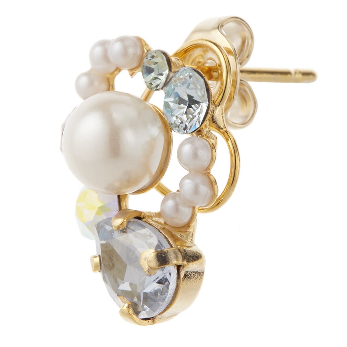 大粒フェイクパールとカラフルなストーンミックススタッドピアス