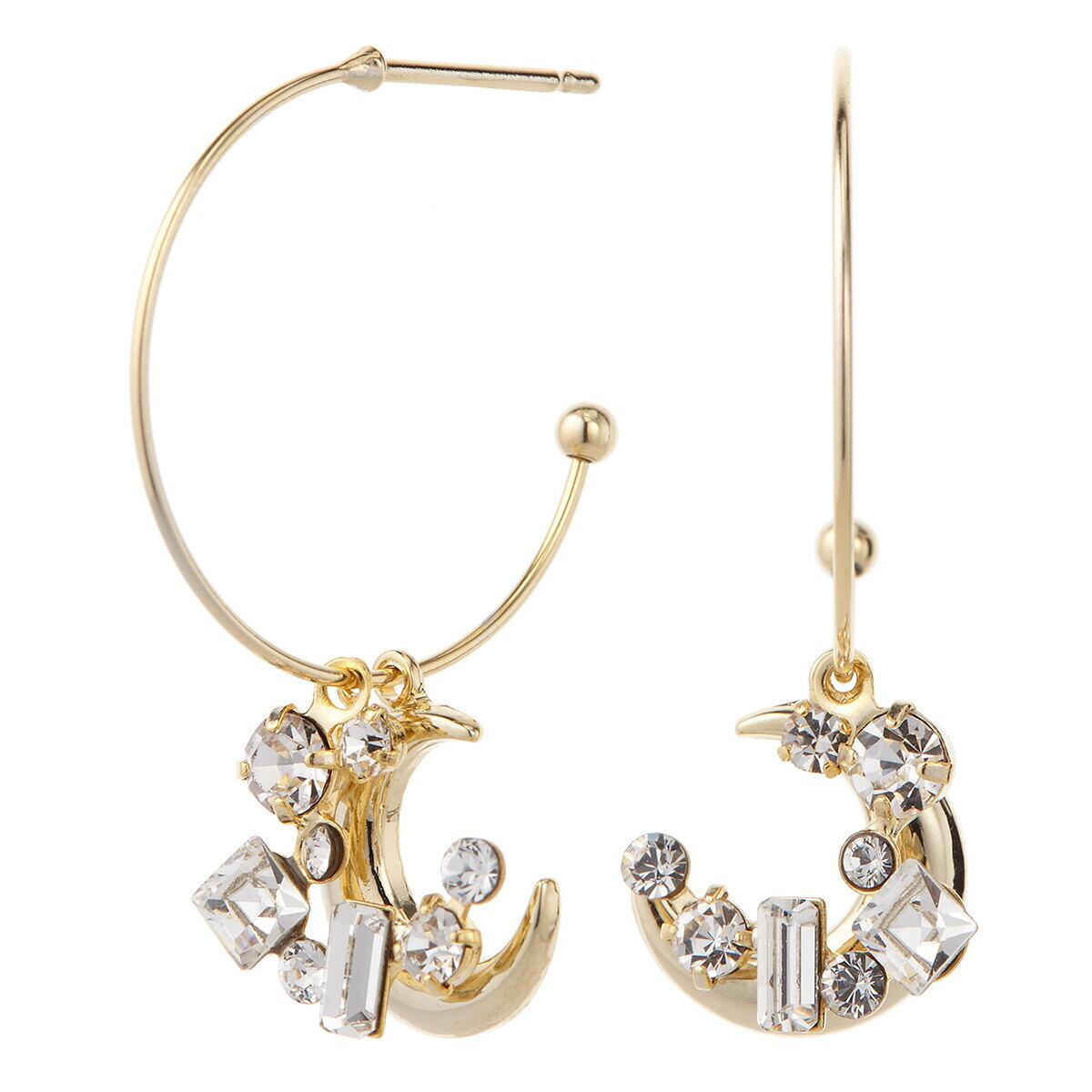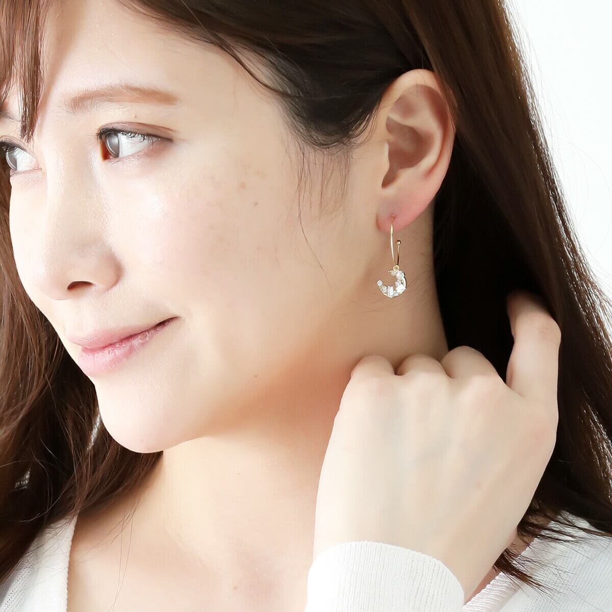 三日月モチーフとストーンミックスが耳元で揺れて輝き女性らしさを演出してくれます。